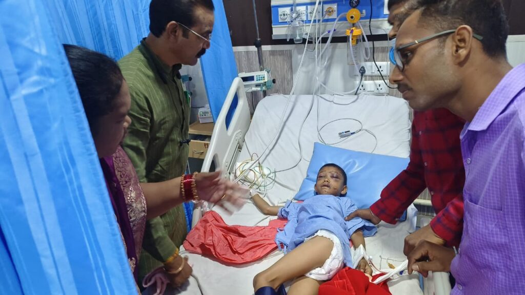 विधायक कुंवर सिंह निषाद देवसरा में बच्चे से मुलाकात नहीं कर पाये थे। अपने संवेदनशीलता दिखाते हुए आज अपने धर्मपत्नी श्रीमती दंतेश्वरी निषाद के साथ भिलाई के शंकराचार्य अस्पताल में नाबालिग बच्चे को देखने पहुंचे और वहां के डाक्टरों को बेहतर से बेहतर इलाज करने के लिए डाक्टरों से बातचीत किया।