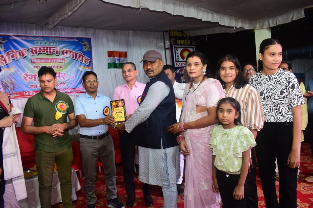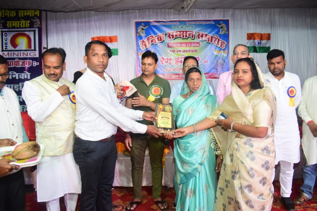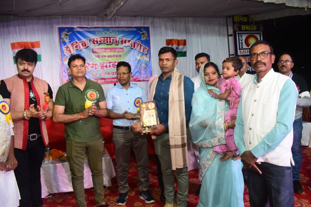 कार्यक्रम की अध्यक्षता सरपंच शिवराम सिंद्रामें ने किया । उन्होंने कहा कि हमारे अंचल के सैनिक भाइयों को एवं उनके परिवार को सम्मान देने का यह हमारा छोटा सा प्रयास है l इसे बेहतर बनाने में हमारे ग्राम वासियों ने अपना भरपूर योगदान दिया । कलेक्टर एवं एसपी ने हमारे आमंत्रण को स्वीकार कर हमें धन्य कर दिया। सैनिक सम्मान के बाद रंग झांझर कार्यक्रम का भी आयोजन किया गया l इसमें छत्तीसगढ़ के फिल्मी कलाकार सुनील तिवारी भी उपस्थित थे l