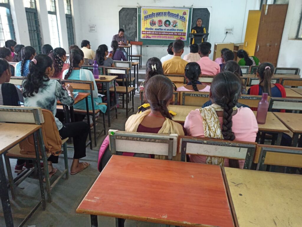 मुख्य वक्ता के रूप में पधारे कृष्णा साहू (जिला संयोजक, जनजातीय गौरव स्मृति कार्यक्रम एवं सचिव, वनवासी विकास समिति, जिला – बालोद) ने बताया कि, भारत के आदिवासी समाज के गौरव हेतु 15 नवम्बर 2024 से 15 नवम्बर 2025 तक गौरवगाथा मनाया जा रहा है। इन्होंने भारत के इतिहास में जनजातीय नायकों के प्रति हुए उपेक्षा को प्रमुखता से उठाया और पहला स्वतंत्रता सेनानी 1880 में शहीद हुए तिलका मांझी को बताया। कार्यक्रम की अध्यक्षता करते हुए महाविद्यालय के प्राचार्य डॉ. चंदना बोस ने जनजातीय समाज से प्रकृति से जुड़ाव एवं संरक्षण के तरीकों को युवा पीढ़ी को सीखने का संदेश दिया। ‘‘जनजातीय समाज का गौरवशाली अतीत’’ के अंतर्गत महाविद्यालय में रंगोली, भाषण, निबंध इत्यादि विधाओं पर प्रतियोगिता का आयोजन किया गया।