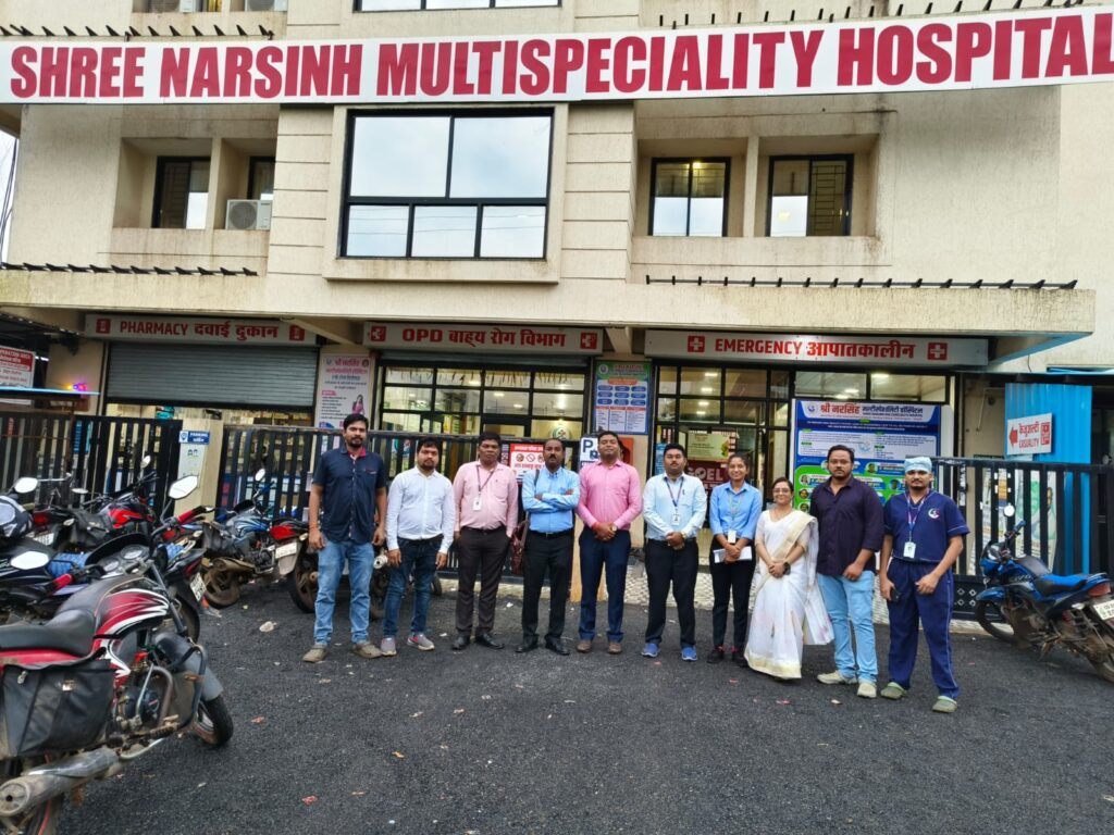 निरीक्षण के लिए गुवाहाटी मेडिकल कॉलेज से डॉक्टर भद्रकांत शर्मा एवं उनकी टीम पहुंची हुई थी। इस दौरान डायरेक्टर डॉक्टर तारेश कुमार, मेडिकल डायरेक्टर डॉक्टर जोनाथन, एनएबीएच कोऑर्डिनेटर अभिषेक ठाकुर, डॉ अश्वनी, डॉ पीसी सूर्या, डॉ देवेश, टीपीए कोऑर्डिनेटर सिंधुमनी, इनफेक्शन कंट्रोल टीम से डॉ कृष्ण, डॉ अक्षय, अकाउंट गंगा देशमुख, डायग्नोस्टिक मैनेजर हितेश कुमार, फायर एंड इलेक्ट्रिकल सेफ्टी टिकेश्वर साहू और टीम सहित स्टाफ भुवन और टीम और सभी नर्सिंग स्टाफ उपस्थित थे।