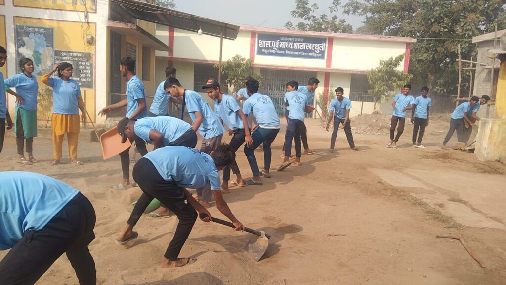 बालोद। राष्ट्रीय सेवा योजना इकाई शासकीय उच्चतर माध्यमिक विद्यालय सांकरा/ज के तत्वाधान में ग्राम खरथुली में आयोजित शिविर के द्वितीय दिवस का शुभारंभ सुबह प्रभात फेरी एवं योग व्यायाम एवं जुंबा डांस कर किया गया। तत्पश्चात परियोजना कार्य के अंतर्गत शाला परिसर की साफ सफाई किया गया।