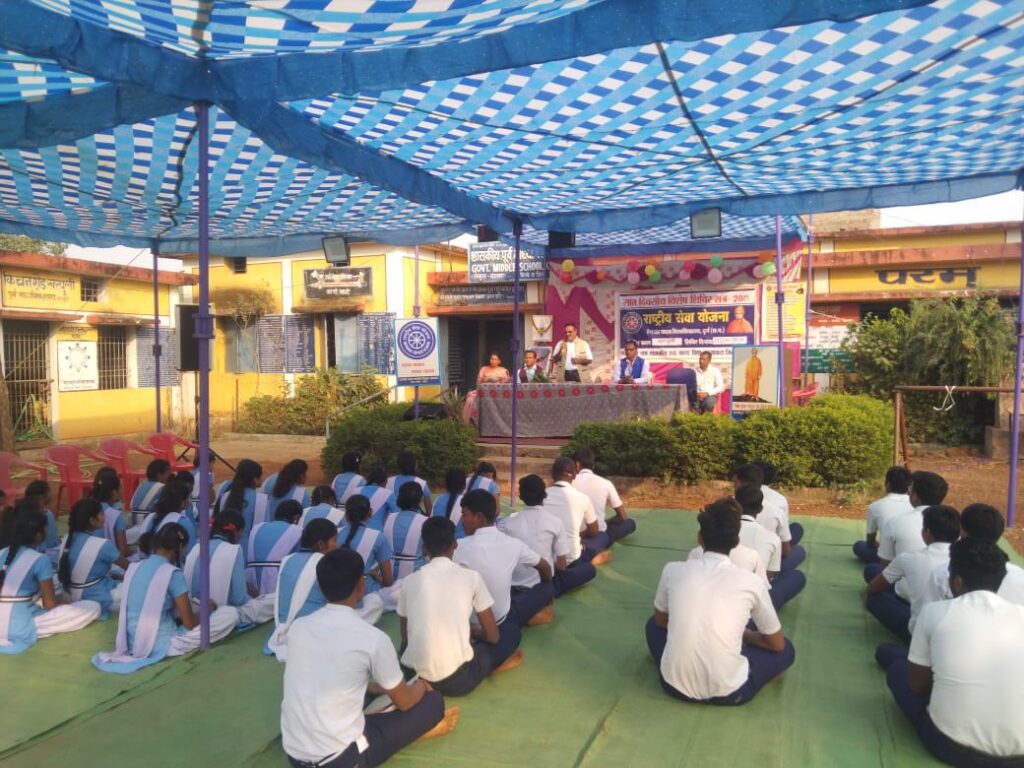 दोपहर बौद्धिक परिचर्चा में आमंत्रित मुख्य अतिथि अंचल के मूर्धन्य कवि साहित्यकार, प्रखर वक्ता, समाजसेवी, सेवानिवृत्त व्याख्याता, मानस मर्मज्ञ , राष्ट्रपति पुरस्कृत परम जगदीश देशमुख ने “अनुशासन एवं व्यक्तित्व विकास” पर प्रेरणात्मक व्याख्यान शिविरार्थियों एवं समस्त ग्राम वासियों को अपनी विशिष्ट शैली में रामचरितमानस एवं युवाओं के प्रेरणा स्रोत स्वामी विवेकानंद के विभिन्न प्रसंगों एवं उदाहरण के द्वारा बहुत ही रोचक ढंग से सभी को जीवन में उत्तरोत्तर सफल होने के लिए प्रेरित किया।
