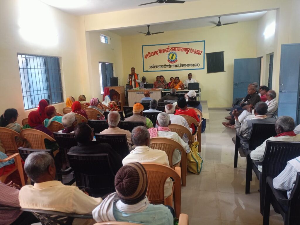 पश्चात पेंशनर्स समाज को कुर्सी प्रदान करने वाली पार्षद द्वय श्रीमती माया जयेश ठाकुर एवं श्रीमती रहिमत कोसमा का सम्मान किया गया। श्रीमती माया ठाकुर ने अपने उदबोधन में कहा कि मैं बुजुर्ग गणों में ऐसी एकता देखकर भावविभोर हूं,जहां दूरदराज के पेंशनर्स यहां उपस्थित हैं, और अपनी समस्या का समाधान पाते हैं ।जब भी कोई सहयोग की आवश्यकता हो निः संकोच मुझे कह सकते हैं। बैठक में जिला उपाध्यक्ष चुन्नीलाल साहू, तहसील उपाध्यक्ष श्रीमती रश्मि केराम,अंकेकक्ष द्वय बी.एस. साहू एवं डी.आर. सूर्य वंशी संगठन मंत्री भोमनसिंह ठाकुर कार्यकारिणी सदस्य भोलाराम साहू, रोहित देवांगन, देवशरण देशमुख, मनराखन उइके हेमिन अठभैया, उषा कामड़ी, खिलेश्वरी साहू अहिल्या बघेल कमला भूआर्य सहित 64 पेंशनर्स उपस्थित थे।