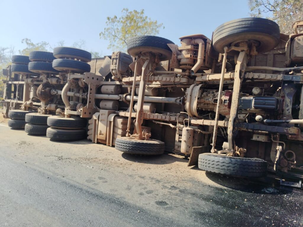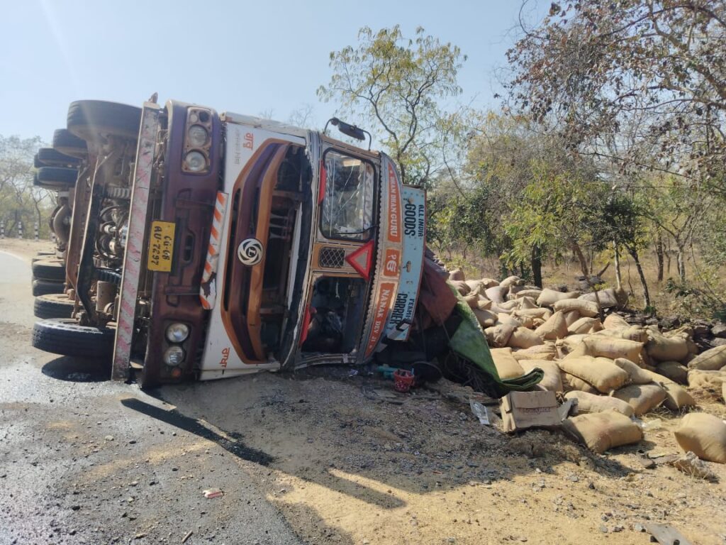 गनीमत कोई जनहानि नहीं हुई। लेकिन जिस तरह से ट्रक पलटी वह नजारा देखने लायक था। ट्रक के पलटने के बाद धान से भरी सभी बोरियां सड़क और किनारे आगे आ गिरी।