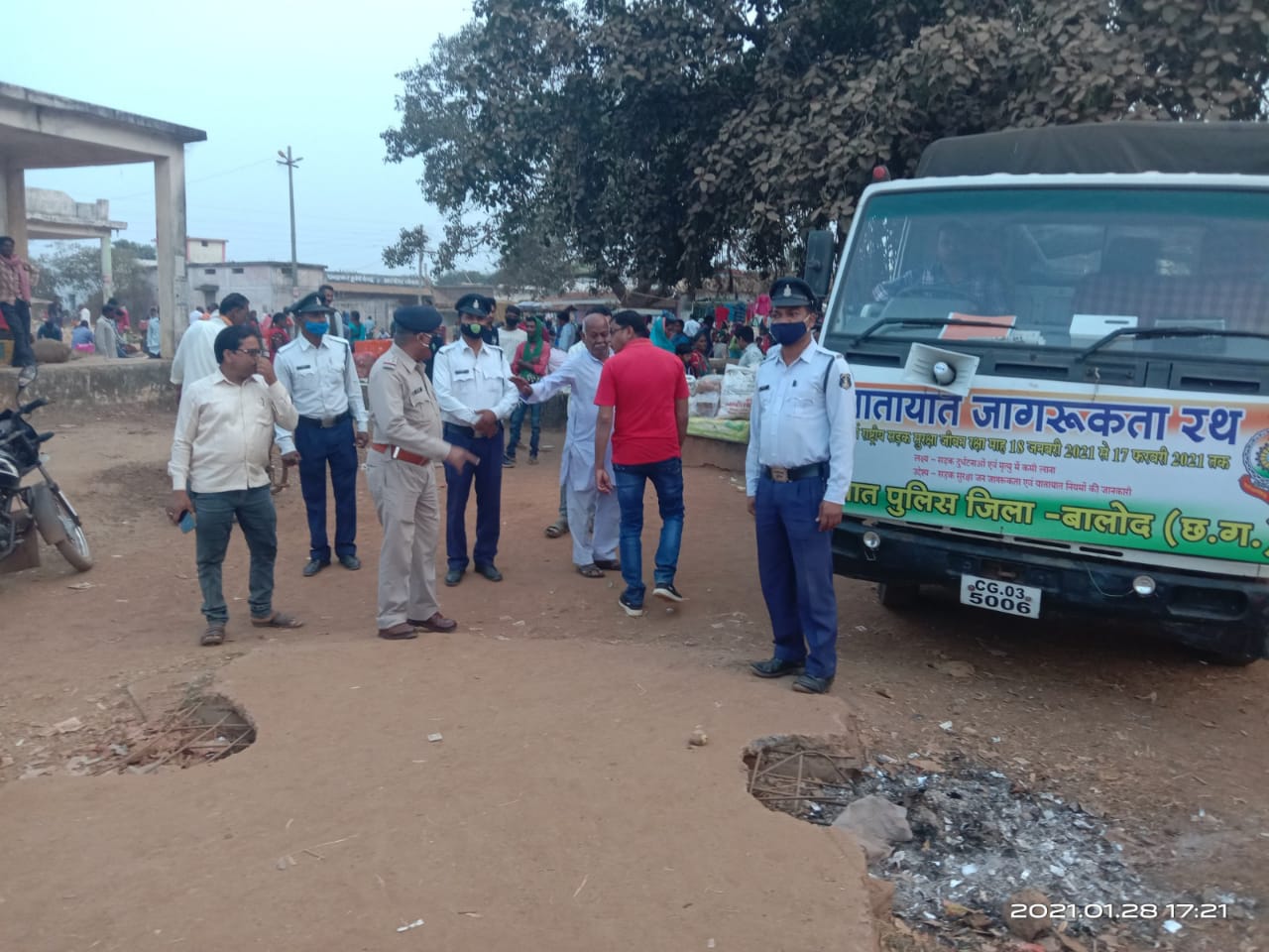 बालोद – 32 वां राष्ट्रीय सड़क सुरक्षा माह 18.01.2021 से 17.02.2021 के दौरान चल रहा है इसी क्रम गुरुवार को यातायात जागरूकता रथ के माध्यम से ग्राम सांकरा क के साप्ताहिक बाजार में नागरिकों को सड़क सुरक्षा नियमों के प्रति जागरूक किया गया है। यातायात प्रभारी आरएस सिन्हा ने बताया एसपी के निर्देश पर इस बार शहर के साथ गाँव में भी जागरूता अभियान चला रहे हैं बाजारों व सार्वजनिक स्थानों में जाकर लोगों को ट्रैफिक के नियम बता रहे हैं। ज्ञात हो कि एसपी जितेंद्र सिंह मीणा ने भी कहा कि हमारी प्लानिंग इस बार सड़क हादसों में 10 से 20% तक कमी लाने की है। इसी को ध्यान में रखकर पूरे 1 माह अभियान चलाया जा रहा है और इसके लिए अलग अलग तरह से योजना बनी है। जिस पर हमारे सभी स्टाफ व थाना प्रभारी अपने-अपने क्षेत्र में काम कर रहे हैं।