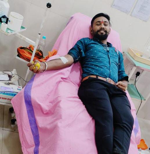 बालोद। युवा प्रकोष्ठ सचिव तहसील साहू समाज डौंडीलोहारा तथा विधि विभाग के स्टूडेंट धनेश साहू ने शनिवार को जिला अस्पताल बालोद में एक माइग्रेन के मरीज को ब्लड देकर अपना आठवां रक्तदान किया। धनेश साहू शुरू से ही राष्ट्रीय सेवा योजना, रेड क्रॉस, रेड रिबन, तथा छात्र युवा मंच जैसे एनजीओ से समाज सेवा के क्षेत्र में जुड़े हुए हैं। रक्तदान के अलावा विभिन्न क्षेत्रों में भी अपना योगदान देते रहते हैं। और लोगों को भी रक्तदान के लिए तथा अन्य जागरूकताओं के लिए जागरूक करने का प्रयास करते रहते हैं। धनेश साहु ने बताया कि जब से वह रक्तदान करते आ रहे हैं तब से उन्हें गंभीर बीमारी का कभी खतरा नहीं हुआ। रक्तदान करने का उद्देश्य शिक्षा जीवन के लिए और जीवन वतन के लिए इसी उद्देश्य से आगे बढ़ते जा रहे हैं।