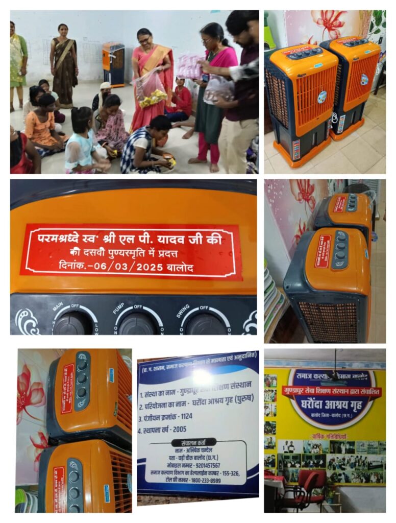 सेजेस कन्नेवाडा में न्यौता भोज कराए। - घरौंदा आश्रय स्थल बालोद में कूलर दान किए। इस तरह प्रत्येक वर्ष ऐसा आयोजन करते रहने की बात तीनों बेटियों ने कही। दसवीं पुण्यस्मृति के