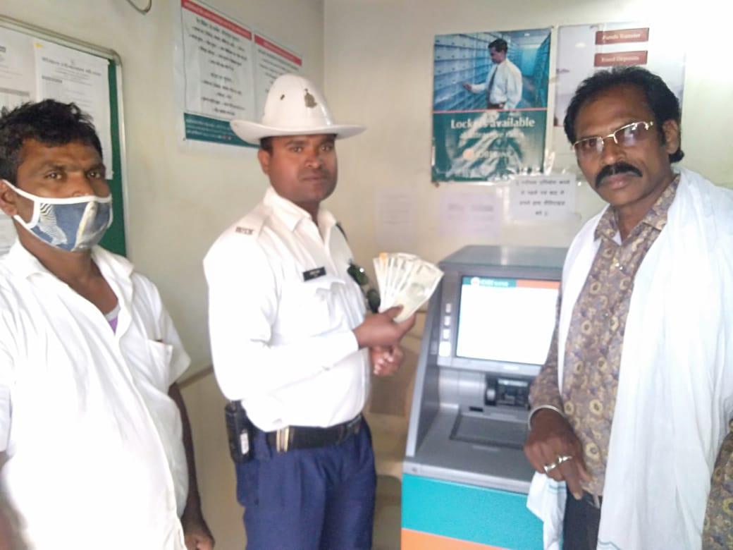 जहां मकई चौक के पास पैसा मालिक मिला। पैसा मालिक पुसउ राम साहू ग्राम भोथली ब्लाक गुरुर जिला बालोद निकला। जिसके बाद नाम गांव एटीएम का मिनीस्टेटमेन्ट चेक करके पुसउ राम को 3000 रुपए यातायात आरक्षक ने सुपुर्द किया। पुसउ राम ने बताया कि वह अपनी पत्नी के ईलाज के लिए पैसा निकालने के लिए आईडीबीआई एटीएम गया हुआ था। पैसा नही निकला समझकर बहुत परेशान होकर चला गया था। वहीँ पुसउ राम ने यातायात आरक्षक को धन्यवाद ज्ञापित किया। जो वक्त पे भगवान बन के मेरा पैसा मुझे समय पर दिला दिया। पैसा सुपुर्द करते समय आरक्षक कौशल नेताम, परमेश कुम्भकार, उपनिरीक्षक शत्रुघन पांडे उपस्थित थे।