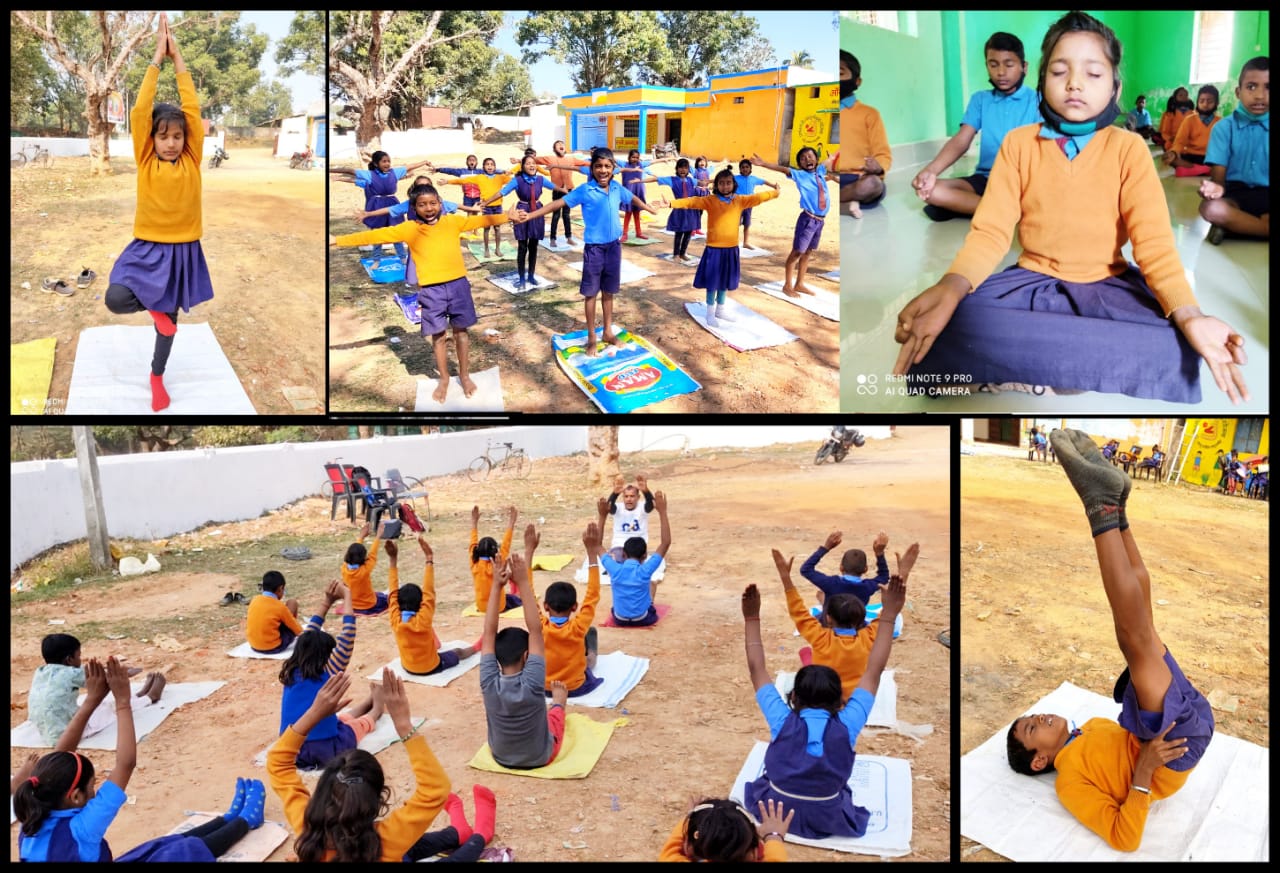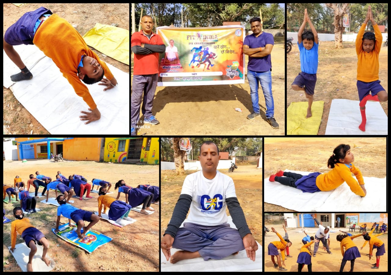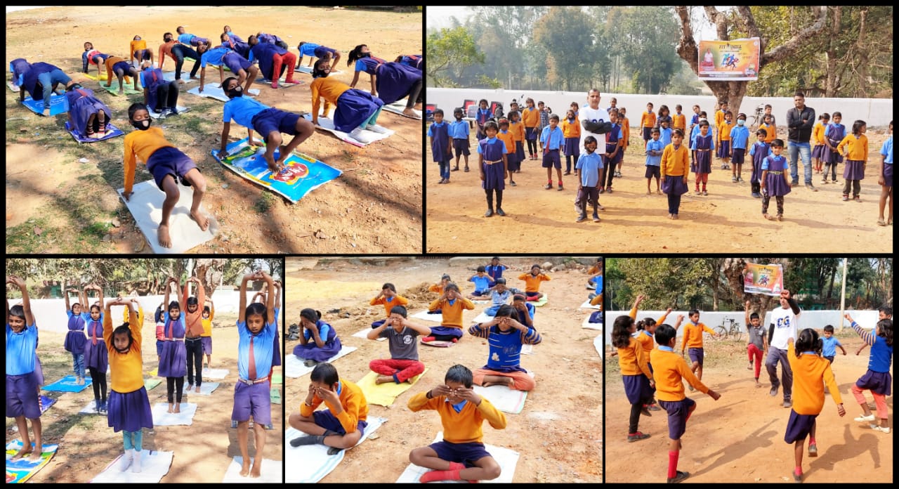 योग प्रशिक्षक श्रीकांत पाण्डेय ने चर्चा के दौरान बताया कि फिट इंडिया अभियान के तहत् बच्चों को तरोताजा और स्वस्थ रहने के लिए सर्वप्रथम यौगिक व्यायाम के 12 अभ्यास कराया गया। जिसमें खड़े होकर किये जाने वाले आसन में बच्चों को लंबाई बढ़ाने के लिए ताड़ासन और वृक्षासन, बैठकर किए जाने वाले आसन में दंडासन, तितली आसन, वज्रासन, पेट के बल पर लेटकर किए जाने वाले आसन में मकरासन, भुजंगासन और शलभासन, पीठ के बल पर लेटकर किए जाने वाले आसन में सेतुबंध आसन, अर्ध हलासन, सर्वांगासन, बच्चों में याददाश्त बढ़ाने हेतु बच्चों तो शीर्षासन का भी अभ्यास कराया गया। यौगिक क्रियाओं में सबसे लोकप्रिय और महत्वपूर्ण सूर्य नमस्कार है, जो आसन, प्राणायाम और मुद्राओं का लाभ एक साथ प्रदान करता है । इसमें 12 अवस्थाएं होती हैं, जो प्रातः काल उगते हुए सूर्य के समक्ष की जाती हैं। सूर्य नमस्कार शरीर के संपूर्ण ग्रंथ में तंत्रिकाओं एवं मांसपेशियों को ऊर्जावान बनाता है तथा इसका नियमित अभ्यास पूरे शरीर में शुद्ध रक्त का संतुलित संचार और सभी प्रणालियों में पूर्ण समन्वय प्रदान करता है। यह साधक को संपूर्ण मानसिक और शारीरिक शिक्षा प्रदान करता है। इसलिए यह अभ्यास बच्चों के लिए बहुत ही जरूरी है। इसके साथ ही अनुलोम विलोम, कपाल भारती, शीतली प्राणायाम, भ्रमरी प्राणायाम और ध्यान के बारे में बतलाया गया।