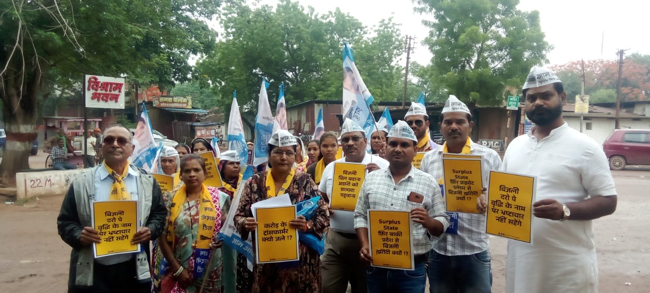 आम आदमी पार्टी ने बिजली दर वृद्धि विरोध में बिजली कार्यालय का किया घेराव