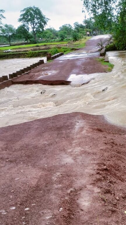 लगातार बारिश से कहीं राहत की खबरें है तो कहीं नुकसान भी देखने को मिल रहा है। ऐसा ही कुछ नजारा लाटाबोड़ से हल्दी पसौद मार्ग पर है, जहां ग्राम बोरी में सेमरिया नाले पर एक बार फिर रपटा नुमा पुल बह जाने से आवागमन अवरुद्ध हो गया है। एक दिन पहले तक दोपहिया वाहन जैसे तैसे इस रास्ते से पार हो रहे थे लेकिन लगातार नाले में बढ़ते जल स्तर से पुल को बचाए रखने के लिए डाला गया मुरूम का ढेर भी अब बह चुका है, जिससे एक बार फिर से इस मार्ग से आवागमन बंद हो चुका है।