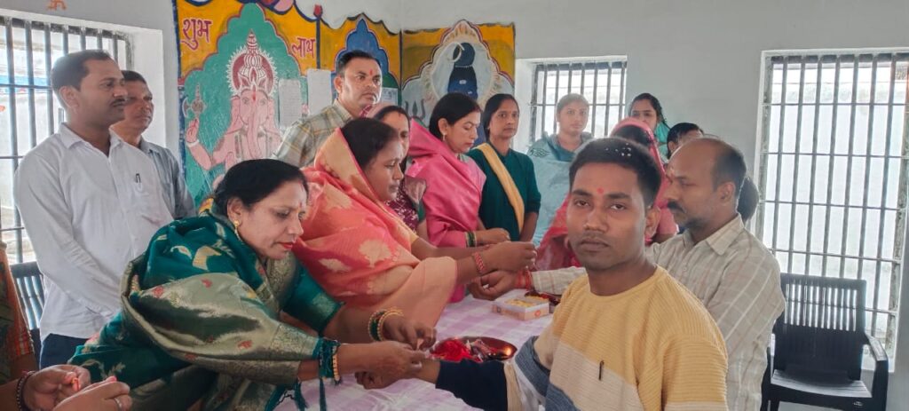 सभी कैदियों ने बहनों से यह वचन दिया। इस अवसर पर मुख्य रूप से जनपद अध्यक्ष सरस्वती टेमरिया, मंडल अध्यक्ष अरुण साहू, जिला पंचायत उपाध्यक्ष टोमन साहू, जनपद पंचायत उपाध्यक्ष दिनेश सिन्हा, जनपद सदस्य गण टेमन साहू, सतीश भेड़िया, भुवनेश्वरी चंद्राकर, माहेश्वरी ठाकुर, ममता साहू, मंडल मंत्री मोहनी देवांगन, उपाध्यक्ष इंदु पवार, महिला मोर्चा तपेश्वरी उंड्रे, ज्योति कल्याण सोनवानी, तथा महिला मोर्चा एवं मंडल के सभी कार्यकर्ता उपस्थित रहे।