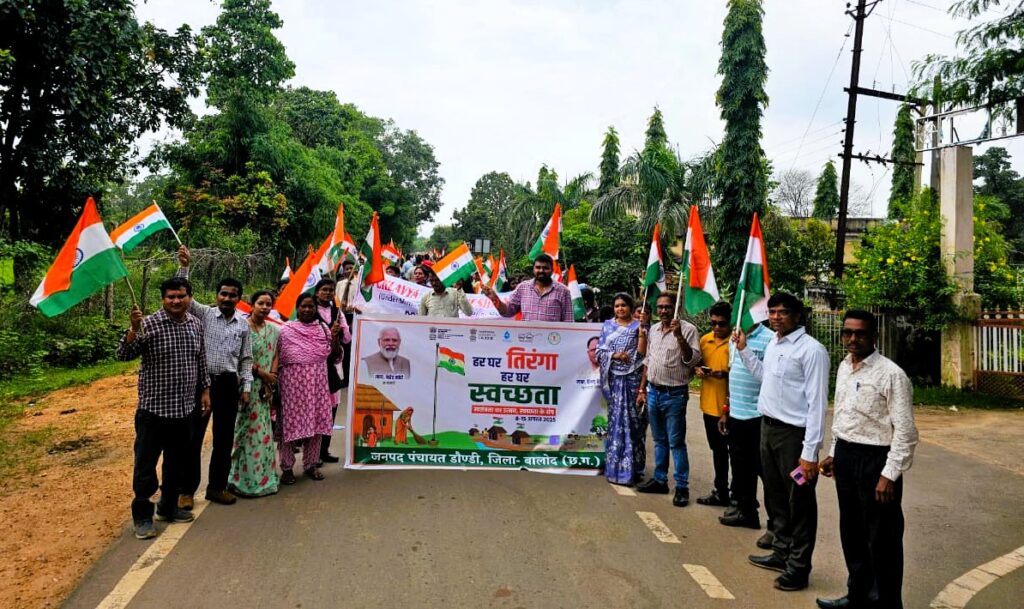 बालोद। कलेक्टर श्रीमती दिव्या उमेश मिश्रा के निर्देशानुसार हर घर तिरंगा अभियान के अंतर्गत जिले में निरंतर तिरंगा रैली एवं अन्य गतिविधियों का आयोजन किया जा रहा है। जिसके अंतर्गत आज विकासखण्ड मुख्यालय डौण्डी एवं ग्राम पुसवाड़ा, लिमउडीह में भव्य तिरंगा रैली का आयोजन किया गया। जनपद पंचायत के मुख्य कार्यपालन अधिकारी श्री डीडी मण्डले ने बताया कि ग्राम पुसवाड़ा में आयोजित इस तिरंगा रैली में स्कूली छात्र-छात्राएं, शिक्षक-शिक्षिका, पंच, सरपंच सहित अन्य जनप्रतिनिधियों के अलावा बड़ी संख्या में ग्रामीणजनों ने अपनी सहभागिता निभाई। इस अवसर पर तिरंगा रैली में शामिल लोगों ने पूरे गांव का भ्रमण किया। कार्यक्रम में बच्चे, बुजुर्ग, युवा-युवति सहित महिलाओं ने भी अपनी सक्रिय सहभागिता सुनिश्चित की।