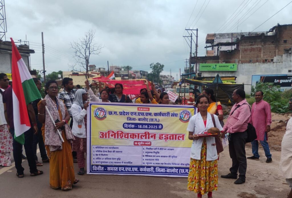 बालोद। छत्तीसगढ़ प्रदेश एनएचएम कर्मचारी संघ द्वारा नियमितीकरण/सविलियन, ग्रेड पे, लंबित 27% वेतन वृद्धि सहित 10 सूत्रीय मांगों को लेकर चल रहा अनिश्चितकालीन आंदोलन लगातार तेज हो रहा है।