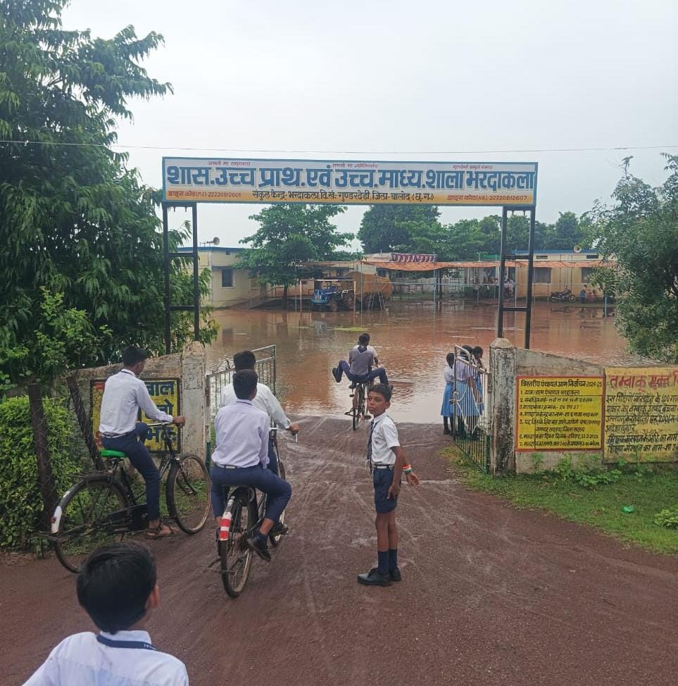 गुण्डरदेही। यह नजारा है भरदाकला के मिडिल और हायर सेकेंडरी स्कूल का, जहां पर बारिश के बाद इस तरह से तालाब जैसा पानी भरा हुआ है। इससे स्कूली बच्चों को काफी परेशानी हो रही है।