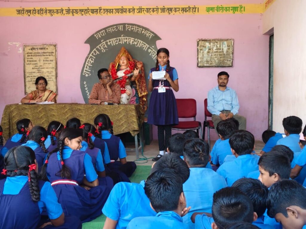 डीबी डिजिटल मीडिया बालोद । शासकीय पूर्व माध्यमिक शाला, नेवारीकला रजत जयंती वर्ष आयोजन ,भाषण प्रतियोगिता हुई।शासकीय पूर्व माध्यमिक शाला, नेवारीकला में “रजत जयंती के स्वर्णिम पटल पर – मेरे सपनों का स्कूल” विषयक भाषण प्रतियोगिता का भव्य आयोजन हुआ। जहाँ विचारों ने नई उड़ान भरी, कल्पनाओं ने स्वर पाया और नन्हे-मुन्ने बालमस्तिष्कों ने उज्ज्वल भविष्य की सुनहरी तस्वीर गढ़ी।प्रतियोगिता में छात्र-छात्राओं अपार उत्साह के साथ सहभागिता की।