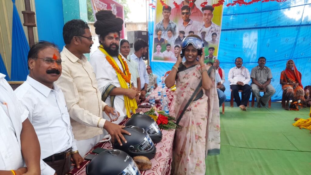 हेलमेट पहनाकर और नकद इनाम देकर किया गया सम्मान