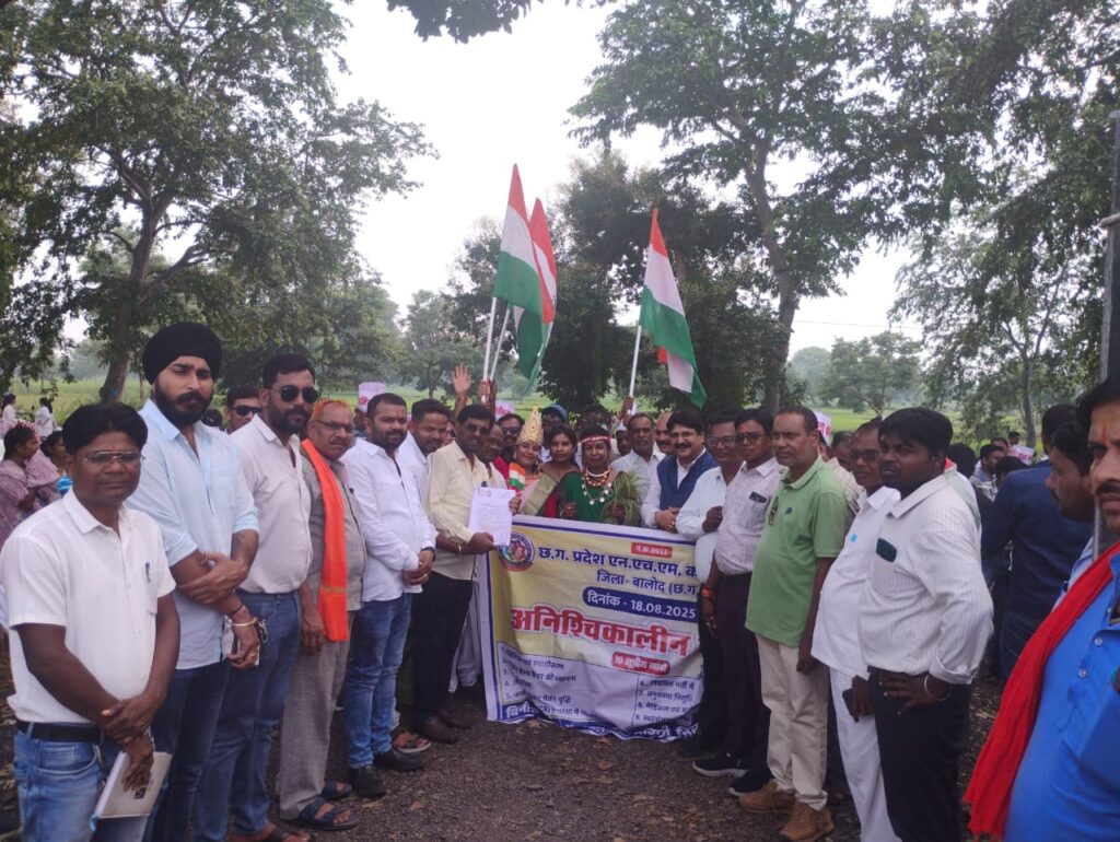 बालोद- छत्तीसगढ़ प्रदेश एनएचएम कर्मचारी संघ द्वारा नियमितीकरण/सविलियन, ग्रेड पे, लंबित 27% वेतन वृद्धि सहित 10 सूत्रीय मांगों को लेकर चल रहा अनिश्चितकालीन आंदोलन जारी है। कर्मचारियों ने बस स्टैंड बालोद से घड़ी चौक होते हुए जिला भाजपा कार्यालय तब बाइक से रैली निकाली और जिला भाजपा कार्यालय में जिला भाजपा अध्यक्ष चेमन देशमुख को अपनी मांगों का ज्ञापन फिर से दिया और पूछा कि आपने बनाया है तो संवारेंगे कब? जोहार छत्तीसगढ़ पार्टी ने बस स्टैंड बालोद में कर्मचारियों के मांग के समर्थन में मुख्यमंत्री , स्वास्थ्य मंत्री को कर्मचारी के मांग के संबंध में समर्थन पत्र लिखा। जिला बालोद के साथ ही 10 सितंबर 2025 को पूरे प्रदेश भर में एनएचएम कर्मचारियों द्वारा जिला भाजपा कार्यालय में जिला अध्यक्ष को ज्ञापन दिया गया और पूछा गया कि आपने बनाया है तो सवारेंगे कब?
