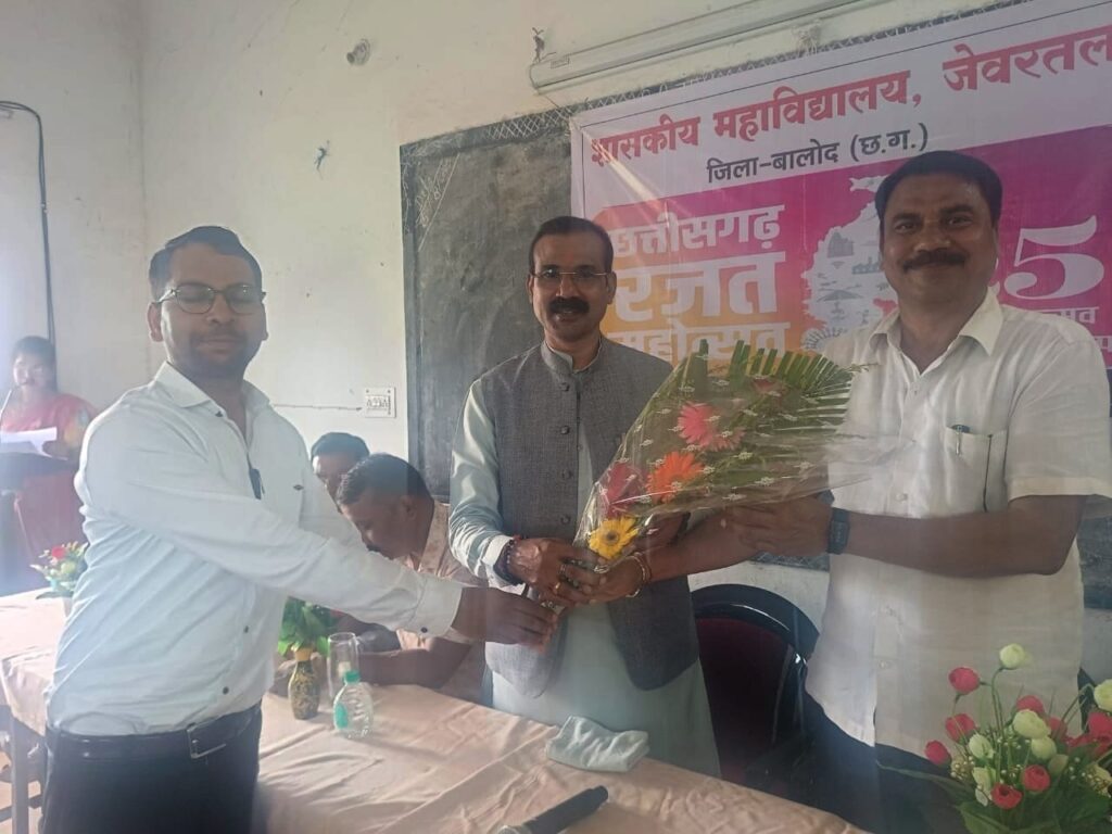 बालोद– देवरी ब्लॉक के ग्राम जेवरतला (रोड) में नवीन शासकीय महाविद्यालय जेवरतला द्वारा आयोजित छत्तीसगढ़ रजत जयंती महोत्सव 2025 कार्यक्रम में गुण्डरदेही विधानसभा के विधायक कुंवर सिंह निषाद शामिल होकर मां सरस्वती की पूजा अर्चना कर कार्यक्रम का शुभारंभ किया। विधायक ने कार्यक्रम को संबोधित करते हुए कहा कि हमें सर्वप्रथम प्रश्न करना आना चाहिए और प्रश्न करने के साथ-साथ उसका सही तरीके से उत्तर सुनने का भी प्रयास करना चाहिए। हर बच्चे के अंदर एक विशेष खूबी होती है प्रत्येक बच्चे को अपनी खूबी को पहचान कर उसे उभारने की आवश्यकता होगी , हर बच्चा जिज्ञासु होना चाहिए, प्रत्येक बच्चे को पढ़ाई के अनुशासन के साथ-साथ खेलकूद में भी आगे बढ़कर हिस्सा लेना चाहिए और खेल में भी आगे बढ़ाने की कोशिश करना चाहिए। विधायक ने कहा शिक्षक हमारे जीवन का मार्गदर्शक होते हैं और हमें उनका आदर हमेशा करना चाहिए। कार्यक्रम में प्रमुख रूप से किशोरी साहू , रमेश सोनवानी, सुनील गोलछा , कोदूराम दिल्लीवार अध्यक्ष ब्लॉक कांग्रेस कमेटी देवरी, भूपेश नायक जनपद सदस्य, चंद्रहास चापिरा सरपंच, संजू चौधरी महामंत्री, ललित हिरवानी, सागर साहू, योगेश्वरी साहू सहित शिक्षक एवं विद्यार्थी उपस्थित रहे।