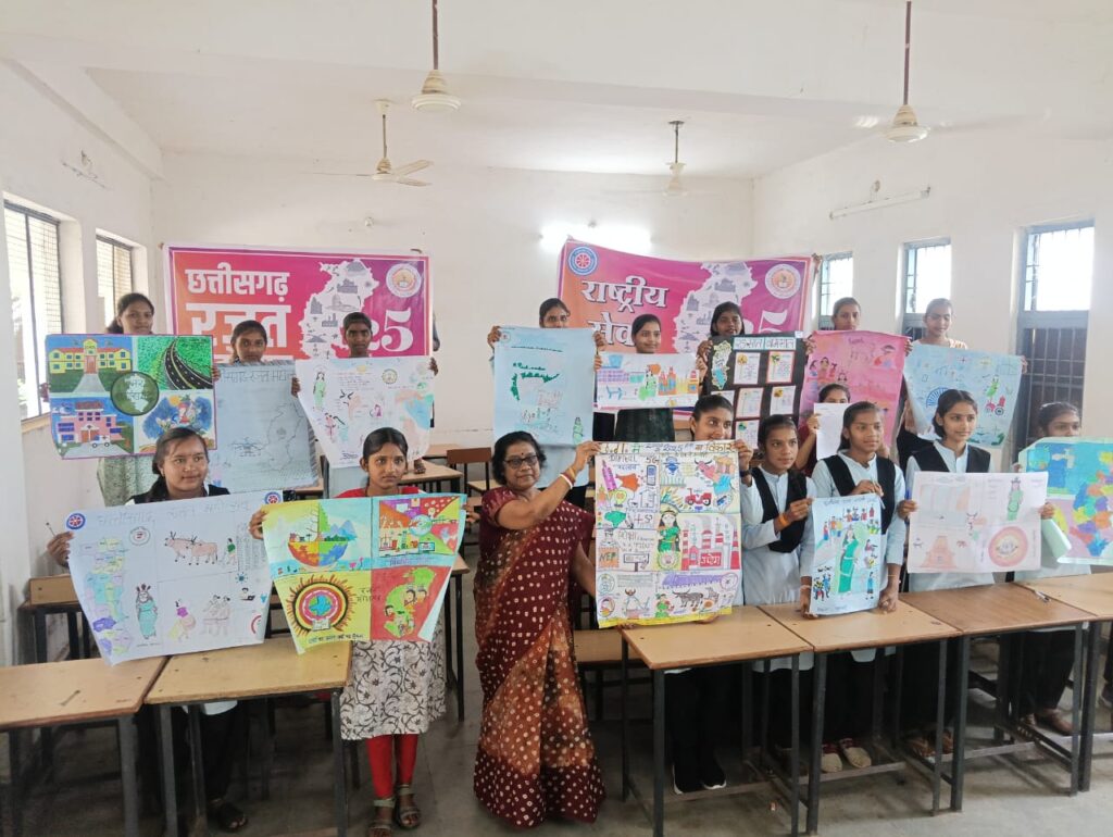 गुरूर। मदन लाल साहू शासकीय महाविद्यालय अरमरीकला में छत्तीसगढ़ राज्य निर्माण के रजत जयंती वर्ष के उपलक्ष्य में पोस्टर प्रतियोगिता, जागरूकता रैली व नुक्कड़ नाटक का आयोजन किया गया। पोस्टर प्रतियोगिता में कुल 20 छात्र-छात्राओं ने भाग लिया। पोस्टर प्रतियोगिता का विषय (छ.ग.) @ 50 विकसित छत्तीसगढ़ @2047 रहा। इसके पश्चात महाविद्यालय की राष्ट्रीय सेवा योजना इकाई की सहायता से जागरूकता रैली का आयोजन किया गया। रैली का शुभारंभ महाविद्यालय के प्राचार्य डॉ कल्पना पॉल द्वारा हरी झंडी दिखाकर की गई। इसके पश्चात जागरूकता रैली अरमरीकला मुख्य मार्ग से होते हुए अरमरीकला बाजार चौक पहुंची। जहां राष्ट्रीय सेवा योजना इकाई के विद्यार्थियों द्वारा छत्तीसगढ़ राज्य रजत जयंती के उपलक्ष्य में नुक्कड़ नाटक प्रस्तुत किया गया और उपरोक्त नाटक के माध्यम से जन-जन को जागरूक किया गया। नुक्कड़ नाटक के पश्चात पुन जागरूकता रैली निर्धारण करते हुए महाविद्यालय वापस आए। उपरोक्त जागरूकता रैली अभियान में 150 छात्र-छात्राएं प्रतिभागी बने व महाविद्यालय के अधिकारी कर्मचारीगण भी उपरोक्त कार्यक्रम का हिस्सा बने। इस अवसर पर महाविद्यालय के प्राचार्य डॉ कल्पना पॉल, सहायक प्राध्यापक डॉ यशवंत साव, सहायक प्राध्यापक डॉ रामेश्वर प्रसाद ठाकुर, सहायक प्राध्यापक श्री प्रमोद भारती, सहायक प्राध्यापक सुश्री योगिता ठाकुर, डॉ आशीष द्विवेदी,श्री कमलेश्वर साहू, डॉ रूचि ताम्रकार डॉ वंदना ध्रुव, डॉ ममिता साहू, श्रीमती अंजनी पैकरा, सुश्री सुमन कश्यप, श्री मयंक साहू,डॉ रमेश, श्री प्रदीप कुमार साहू, श्रीमती अनुराधा सोनी, श्रीमती छाया रानी साहू, श्री रुद्र प्रताप सोम महाविद्यालय के समस्त अधिकारी कर्मचारी एवं छात्र-छात्राएं उपस्थित रहे।