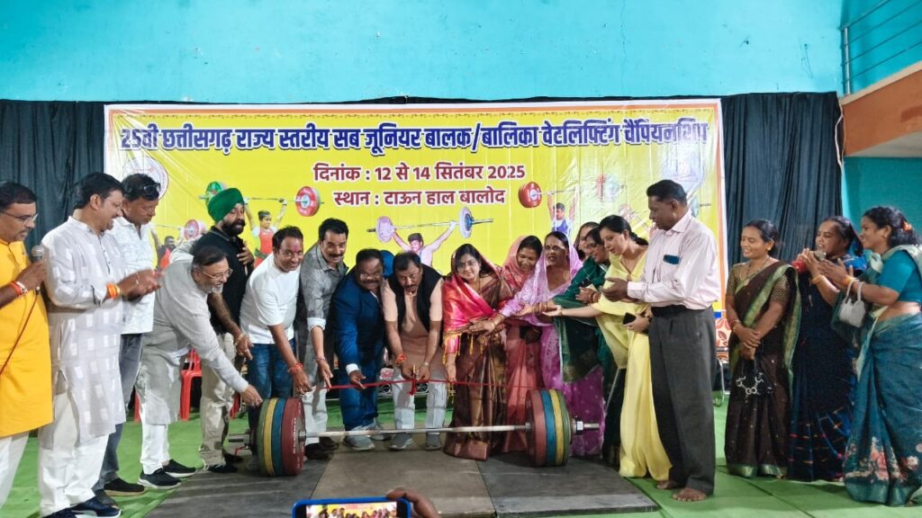 बालोद। 23 वी छत्तीसगढ़ राज्य स्तरीय सब जूनियर बालक एवं बालिका वेटलिफ्टिंग चैंपियनशिप टाउनहॉल बालोद में 12 से 14 सितंबर तक हुई। जिसमें छत्तीसगढ़ की लगभग 20 जिलों से लगभग 200 खिलाड़ी एवं कोच मैनेजर एवं ऑफिशल शामिल हुए। इस अवसर पर मुख्य अतिथि के रूप में छत्तीसगढ़ में लिफ्टिंग के अध्यक्ष एवं दुर्ग के सांसद विजय बघेल उपस्थित हुए। साथ ही बालोद के नगर पालिका अध्यक्ष प्रतिभा चौधरी, उपाध्यक्ष नगर पालिका परिषद बालोद के कमलेश सोनी, जिला पंचायत उपाध्यक्ष तोमन साहू, छत्तीसगढ़ प्रदेश कबड्डी संघ के अध्यक्ष शशि बघेल,जनपद अध्यक्ष सरस्वती टेमरिया, जिला मंत्री सुरेंद्र देशमुख, वार्ड क्रमांक 19 के पार्षद श्रीमती श्यामा यादव के साथ बालोद के गणमान्य नागरिक उपस्थित हुए।
