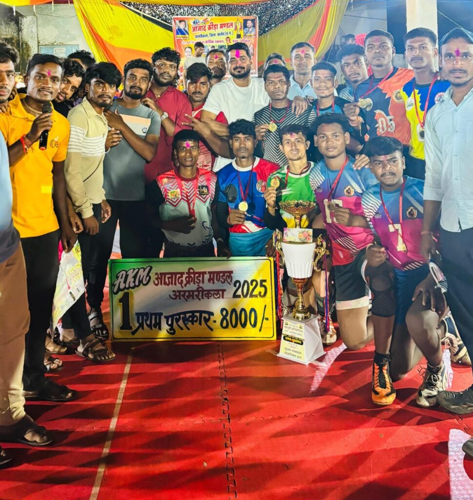गुरूर। जिले के सबसे बड़े गांव अरमरीकला में आजाद क्रीड़ा मंडल द्वारा कबड्डी प्रतियोगिता का आयोजन था। जहां छत्तीसगढ़ के विभिन्न जिले से कुल 40 टीमों ने भाग लिया। समापन के मुख्य अतिथि नरेश साहू सभापति जनपद पंचायत गुरुर थे। अध्यक्षता सरपंच घनेद्र साहू ने की। विशिष्ठ अतिथि भूपेंद्र साहू , भागी राम साहू , चेतन गंगबेर , महेश गंगबेर एवं समस्त पंचगण उपस्थित थे। प्रतियोगिता में पुरस्कार मस्तूरी (बिलासपुर )की टीम प्रथम स्थान प्राप्त किया ,तो द्वितीय पुरस्कार मचांदुर ( दुर्ग) , तृतीय पुरस्कार बासीन ( गुरुर), चतुर्थ पुरस्कार कंवर ( बालोद) की टीम ने प्राप्त किया। मुख्य अतिथि नरेश साहू ने कहा हमारे ग्राम के छोटे छोटे युवा साथियों का बहुत ही सराहनीय प्रयास है। निश्चित ही इस प्रकार के आयोजनों से गांव में एकता की भावना, संगठन बना रहता है। खिलाड़ियों को आगे बढ़ने का मौका मिलता है। आप हर साल आयोजन कराओ मेरा सहयोग मिलता रहेगा। सरपंच घनेद्र साहू ने कहा कि खेल से हमारा शरीर स्वस्थ रहता है। शारीरिक और मानसिक रूप से मजबूत होते है । वहीं मैच में कमेंट्री बिट्टू बनपेला, पेमन साहू, जागृत साहू ने अपने बातों से दर्शकों को बांधे रखा। आयोजन में भिनेश साहू, रूपेश साहू, प्रीत पटेल, टेकराम पटेल, खेमलाल साहू, लोकेंद्र साहू, तेजेश पटेल, राजा साहू, जागृत साहू,चंद्रहास सिन्हा,राहुल, ताराचंद पटेल, खोमेश पटेल, बंटी यादव, पप्पू पटेल, शेखर साहू, बबलू ठाकुर सहित समस्त ग्राम वासियों का सहयोग रहा।