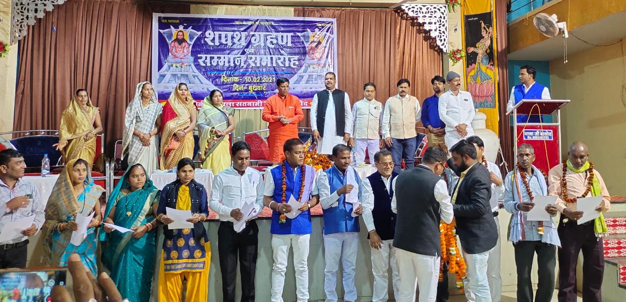बालोद– जिला सतनामी समाज के नव निर्वाचित पदाधिकारियों का शपथ ग्रहण व पूर्व जिला पदाधिकारियों का सम्मान समारोह कार्यक्रम टाउन हाल में हुआ। कार्यक्रम में मुख्य अतिथि समाज के युवा नेता भुवनेश्वर बघेल, अध्यक्ष अनुसूचित जाति विकास प्राधिकरण छत्तीसगढ़ शासन व डोंगरगढ़ के विधायक थे। अध्यक्षता प्रदेश सतनामी समाज के प्रथम अध्यक्ष हेमंत सांग ने की। विशिष्ठ अतिथि सोना देवी देशलहरा अध्यक्ष जिला पंचायत बालोद सहित सतनामी समाज बालोद के पांचों ब्लाक के जनपद सदस्य गण रहे। अतिथियों के द्वारा नव निर्वाचित पदाधिकारियों को शपथ ग्रहण दिलाया।