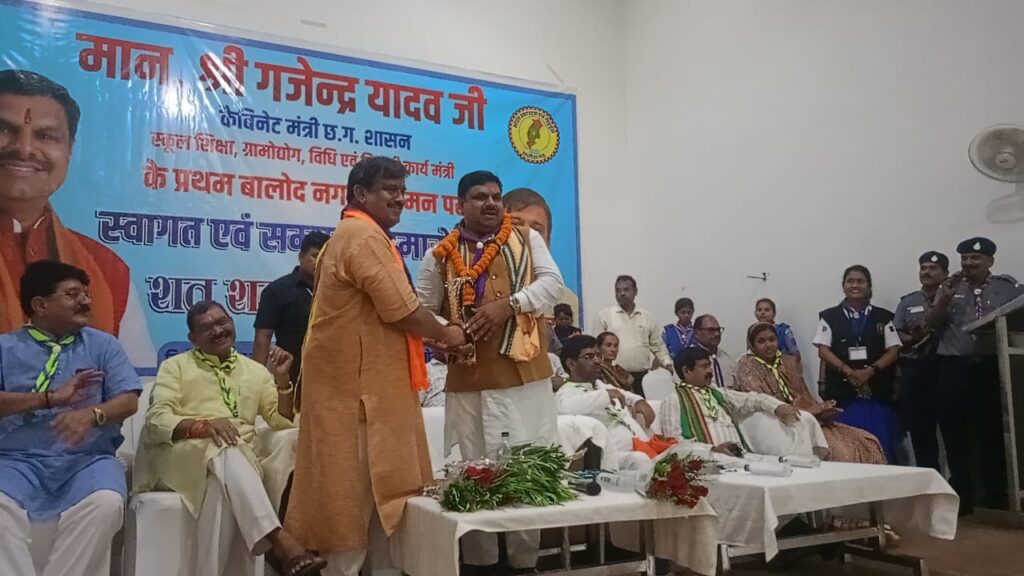 बालोद। स्कूल शिक्षा, ग्रामोद्योग, विधि एवं विधायी कार्य मंत्री श्री गजेन्द्र यादव का प्रथम बार बालोद जिले में आगमन हुआ। इस अवसर पर भारत स्काउट्स एवं गाइड्स, जिला संघ बालोद द्वारा जिला मुख्य आयुक्त श्री राकेश यादव के नेतृत्व में भव्य सम्मान समारोह आयोजित किया गया। कार्यक्रम में मंत्री जी का स्कार्फ-वागल एवं पुष्प गुच्छ से स्वागत कर सम्मान किया गया। अपने उद्बोधन में मंत्री श्री गजेन्द्र यादव ने कहा कि “स्काउट-गाइड संगठन सदैव सेवा कार्यों में अग्रणी रहा है। यह संगठन बच्चों और युवाओं में अनुशासन, सेवा भावना और राष्ट्रभक्ति का संचार करता है।