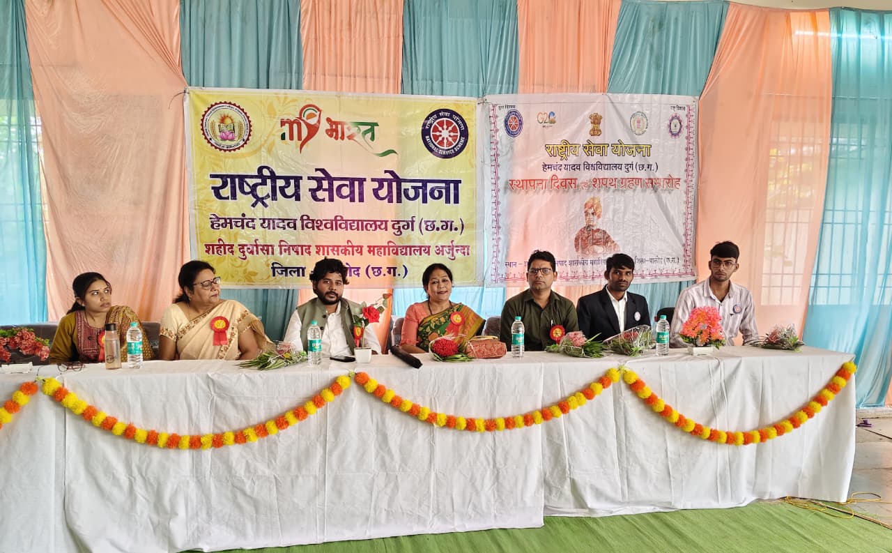अर्जुन्दा। शहीद दुर्वासा निषाद शासकीय महाविद्यालय अर्जुन्दा में राष्ट्रीय सेवा योजना इकाई द्वारा राष्ट्रीय सेवा योजना के 56 वां स्थापना दिवस एवं शपथग्रहण समारोह का आयोजन किया गया। जिसमें मुख्य अतिथि के रूप में श्रीमती डॉ लीना साहू जिला संगठक राष्ट्रीय सेवा योजना जिला बालोद से उपस्थित रहीं। कार्यक्रम की अध्यक्षता डॉ सोमाली गुप्ता ने किया। वहीं विशिष्ट अतिथि के रूप में श्री ओ.पी देवांगन सुप्रसिद्ध बांसुरी वादक छत्तीसगढ़, श्री डॉ प्रदीप कुमार प्रजापति पूर्व कार्यक्रम अधिकारी रासेयो, सुश्री प्रभा शर्मा प्रभारी कार्यक्रम अधिकारी रासेयो, पुसऊ यादव शिक्षादूत समाजसेवी, वरिष्ठ स्वयंसेवक राज्य स्तरीय पुरस्कृत श्रेष्ठ स्वयंसेवक यशवंत कुमार टंडन, प्रणव तिवारी, दानेश्वर सिन्हा उपस्थित रहे। शुभारंभ मां सरस्वती एवं युवाओं के प्रेरणा स्त्रोत व राष्ट्रीय सेवा योजना के प्रतीक पुरुष स्वामी विवेकानंद जी छत्तीसगढ़ महतारी के छायाचित्र पर पूजा अर्चना माल्यार्पण व दीप प्रज्ज्वलित व सरस्वती वंदना राज्य गीत लक्ष्य गीत गाकर किया गया। मुख्य अतिथि डॉ लीना साहू जिला संगठक राष्ट्रीय सेवा योजना जिला बालोद ने स्वयंसेवकों को सम्बोधित करते हुए कहा कि समाजसेवा करने और व्यक्तित्व विकास चरित्र निर्माण करने का सबसे बड़ा मंच है राष्ट्रीय सेवा योजना यह आपको शून्य से शिखर पर ले जा सकती है। भारत सरकार युवा कार्यक्रम एवं खेल मंत्रालय द्वारा पूरे भारत में यह संचालित किया जाता है। साथ ही स्वयंसेवकों को राष्ट्र सेवा के लिए शपथ भी दिलाई। प्राचार्य डॉ सोमाली गुप्ता ने स्वयंसेवकों को समाजसेवा करने के लिए प्रेरित किया। ओ.पी देवांगन सुप्रसिद्ध बांसुरी वादक ने स्वयंसेवकों को अपने संगीत जीवन के अनुभवों और संगीत कला के क्षेत्र में आगे बढ़ने के लिए प्रेरित किया। साथ अपने बांसुरी के मधुर संगीत के माध्यम से सभी का मन मोह लिया। छत्तीसगढ़ लोक कला और संस्कृति के संरक्षण और संवर्धन में अपनी विशेष भूमिका निभा रहे हैं। स्वयंसेवकों ने सांस्कृतिक कार्यक्रम की प्रस्तुति भी दी।