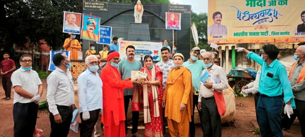 बालोद । मानव उत्थान सेवा समिति के तत्त्वावधान में सुविख्यात समाजसेवी व आध्यात्मिक गुरु श्री सतपाल जी महाराज की प्रेरणा व श्री विभु जी महाराज के मार्गदर्शन में 27 व 28 सितम्बर को समस्त भारतवर्ष में भारत सरकार की स्वच्छता को लेकर सेवा पखवाडा के तहत दो दिवसीय स्वच्छ भारत अभियान चलाया जा रहा है। समिति के क्षेत्रीय आश्रम प्रभारी महात्मा भुवनेश्वरी बाई के दिशा निर्देशन एवं महात्मा हृदयानंद के उपस्थिति में सफाई अभियान किया गया। समिति द्वारा यह भारत के विभिन्न राज्यों में स्वच्छ भारत अभियान चलाया जा रहा है। इसी श्रृंखला में मानव उत्थान सेवा समिति जिला बालोद द्वारा जिला मुख्यालय के पुराने बस स्टैंड में स्थित कर्मा परिसर से लेकर घड़ी चौक महात्मा गांधी जी की प्रतिमा के आसपास सभी जगह पर स्वच्छता अभियान चलाकर महात्मा गांधी जी के प्रतिमा पर माल्यार्पण कर, स्वच्छता अभियान किया गया। इस स्वच्छता अभियान में मुख्य रूप से शामिल हुई नगर पालिका अध्यक्ष श्रीमती प्रतिभा चौधरी, बालोद जिले भाजपा के मिडिया प्रभारी कमल पनपालिया, वरिष्ठ भाजपा नेता लाल चंद लुनिवाल, भाजपा कार्यकर्ता उमाशंकर मंत्री, मुंशीर खान एवं बड़ी संख्या में समाज के व नगर पालिका के कर्मचारी व नागरिक गण उपस्थित थे।