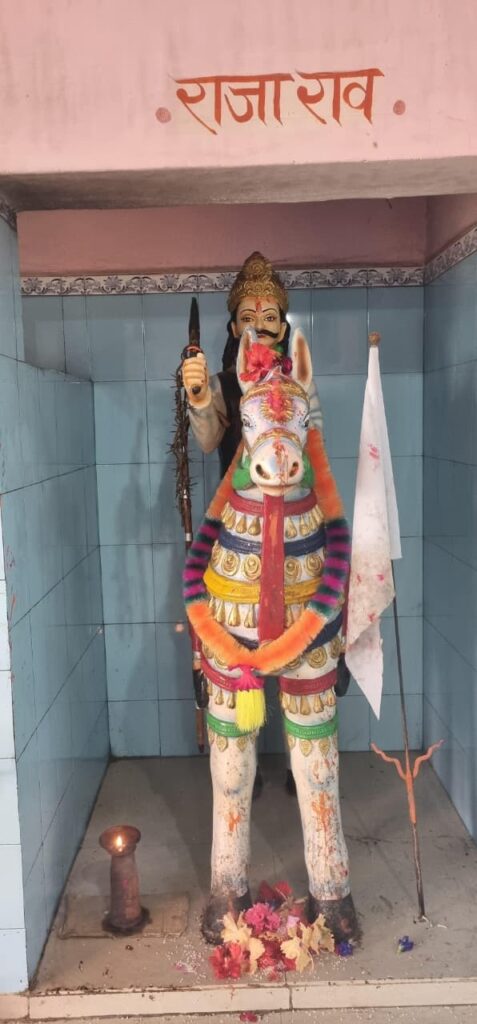 अंदर राजा राव और बईहा राजा की प्रतीकात्मक मूर्तियां घोड़े पर सवार विराजी की गई है। आदिवासी समाज के देवताओं के प्रति भी लोग आस्था रखते हैं और मां कंकालिन के साथ उनकी भी पूजा अर्चना होती है। दानदाताओं की मदद से मंदिर स्थल को विकसित करने का प्रयास यहां के लोग कर रहे हैं। तालाब में सुंदरीकरण का काम भी जारी है। मंदिर समिति में अध्यक्ष जनार्दन सिन्हा सहित कोषाध्यक्ष राम ईश्वर यादव, उपाध्यक्ष मोहन सिन्हा ,देवेंद्र यादव ,अमित यादव, पन्ना सिन्हा ,सचिव हरिश्चंद्र साहू, महेश सिन्हा ,द्वारिका यादव, सादिक अली सहित अन्य जुड़े हुए हैं।