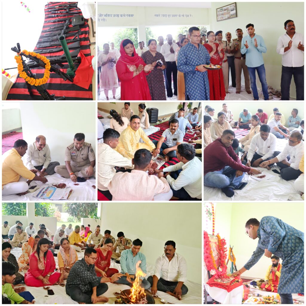 बालोद- विजयदशमी के अवसर पर शस्त्रों एवं शासकीय वाहनों की पूजा हेतु रक्षित केंद्र जिला बालोद में पुलिस अधीक्षक योगेश कुमार पटेल ,अति. पुलिस अधीक्षक मोनिका ठाकुर के उपस्थिति में समस्त राजपत्रित अधिकारी, थाना प्रभारी एवं कर्मचारियों के द्वारा शस्त्रागार के शस्त्रों का तथा शासकीय वाहनों का विधि पूर्वक पूजन किया गया। इस दौरान पुलिस अधीक्षक द्वारा समस्त अधिकारी, कर्मचारियों, नगर वासियों को विजयदशमी की हार्दिक शुभकामनाएं प्रेषित की गई।