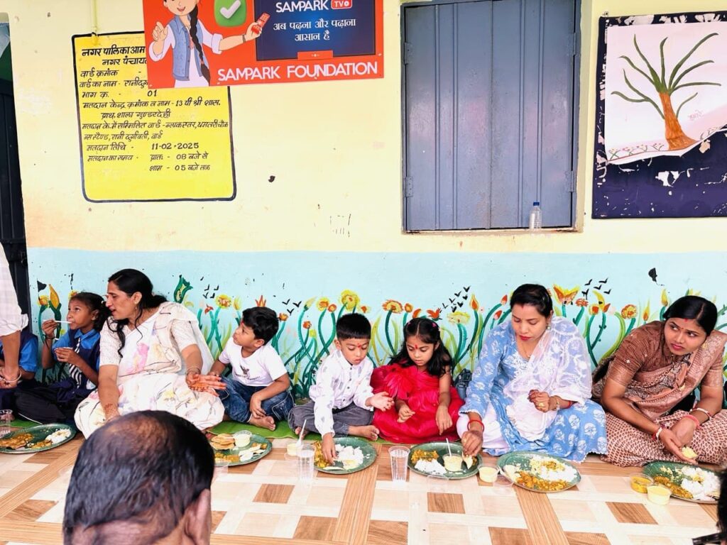 केक काटने के बाद पीएम श्री में पढ़ने वाले नन्हें स्कूली बच्चों के साथ बैठकर एसडीएम सहित अन्य अधिकारी कर्मचारियों ने जमीन पर बैठकर भोजन किया। इस दौरान एसडीएम प्रतिमा ठाकरे झा ने कहा कि हर बच्चे एक समान हैं। न्यौता भोज कराने की सरकार की योजना सराहनीय है। बच्चे भगवान का रूप होते हैं और जब बच्चे को साथ बैठकर भोजन करते हैं तो बच्चों के साथ माता पिता को भी खुशी मिलती है। इस तरह के आयोजन से बच्चों में समानता का भाव आता है और संस्कार उत्पन्न होता है। यह भारतीय संस्कृति की परम्परा है कि एक साथ सभी को एक समान मानकर भोजन करते हैं