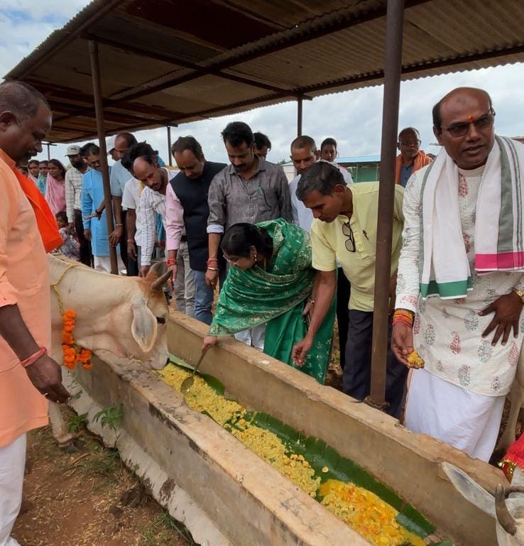 अतिथियों द्वारा गौ माता को रोली, ग़ुलाल, चन्दन से तिलक कर माल्य अर्पित कर धूप दीप जलाकर उनका पूजन-अर्चन किया गया और उनसे आशीर्वाद लिया तथा उन्हें खिचड़ी खिलाया गया।