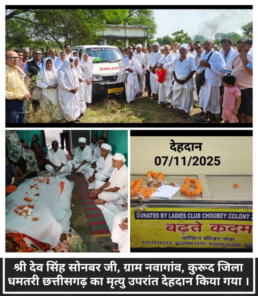 बालोद/ कुरुद- बालोद जिले के कबीर आश्रम करहीभदर के संत देवेन्द्र साहेब के पिता देवसिंह सोनबेर का निधन हो गया उनके द्वारा घोषित देहदान के तहत अंतिम संस्कार गृह ग्राम नवागांव कुरूद में हुआ पश्चात संत समाज,एवं ग्रामवासी की पावन उपस्थिति में देहदान संपन्न हुआ। सेवा, सादगी और सत्यनिष्ठा को अपना जीवन-मूल्य बनाने वाले कुरुद निवासी श्री देवसिंह सोनबेर (4 दिसंबर 1943 – 6 नवंबर 2025) ने 81 वर्ष की आयु में इस संसार को अलविदा कहा। उनका जीवन जितना कर्तव्यनिष्ठ रहा, उनकी विदाई उतनी ही प्रेरणादायक और असाधारण साबित हुई। जीवनभर कर्मयोगी रहे श्री सोनबेर ने देहांत के उपरांत अपनी देह का दान मेडिकल कॉलेज, रायपुर को कर दिया, जिससे वह मृत्यु के बाद भी चिकित्सा शिक्षा के क्षेत्र में ज्ञान के दीप जलाते रहेंगे। उनका यह अनुपम कार्य ‘जीवन में ज्ञान बाँटा और विदा के बाद भी ज्ञान के दीप जलाकर गए’ की भावना को चरितार्थ करता है। यह निर्णय ‘मनुष्य मिटता नहीं, अगर वह सीख छोड़ जाए’ के सिद्धांत का जीवंत प्रमाण है।