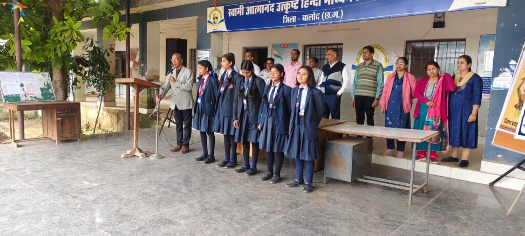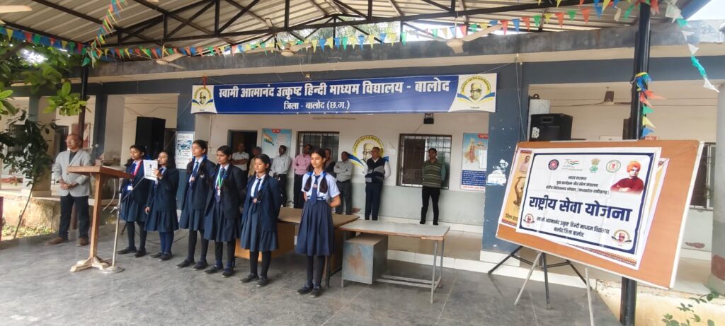 बालोद – स्वामी आत्मानंद उत्कृष्ट हिंदी माध्यमिक विद्यालय बालोद में युवा कार्यक्रम एवं खेल मंत्रालय के निर्देशानुसार राष्ट्रीय सेवा योजना के द्वारा संविधान दिवस पर कार्यक्रम का आयोजन किया गया। कार्यक्रम का थीम “हमारा संविधान हमारा स्वाभिमान” विषय पर छात्र-छात्राओं ने कविता,गीत एवं भाषण की प्रस्तुति दी।