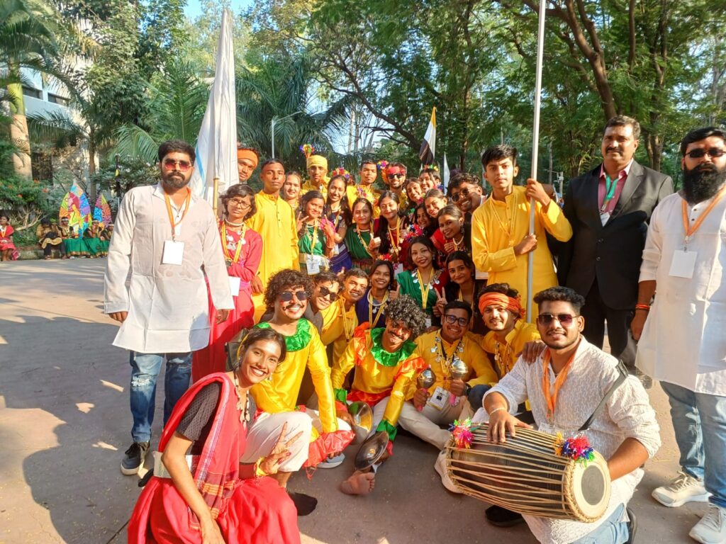अर्जुन्दा:- हेमचंद यादव विश्वविद्यालय दुर्ग (छ.ग.) की टीम ने 39वें जोनल स्तरीय युवा उत्सव औरंगाबाद (महाराष्ट्र) हिस्सा लिया। जिसमें छत्तीसगढ़ के अलग-अलग महाविद्यालय और विश्वविद्यालय के छात्र छात्राएं ने हिस्सा लिया। जिसमें बालोद जिले के शहीद दुर्वासा निषाद शासकीय महाविद्यालय अर्जुंदा की पीजीडीसीए प्रथम सेमेस्टर छात्रा एवं राष्ट्रीय सेवा योजना इकाई के स्वयंसेविका कु पायल निषाद पिता श्री उभयलाल निषाद ने भी रंगोली प्रतियोगिता में हिस्सा लिया और छत्तीसगढ़ की लोक कला संस्कृति परम्परा को रंगोली के माध्यम से छत्तीसगढ़ की लोक कला संस्कृति और परम्पराओं की छटा बिखेरी। पायल निषाद ने 39वें जोनल युवा उत्सव में दिनांक 25 नवंबर से 29 नवबर 2025 तक एम.जी.एम. यूनिवर्सिटी, छत्रपति संभाजीनगर, औरंगाबाद (महाराष्ट्र) में आयोजित जोनल युवा उत्सव 2025 में हेमचंद यादव विश्वविद्यालय, दुर्ग का प्रतिनिधित्व किया। पायल की इस उपलब्धि पर महाविद्यालय के प्राचार्य डॉ सोमाली गुप्ता और समस्त प्राध्यापकगण स्टाफ और राष्ट्रीय सेवा योजना इकाई के कार्यक्रम अधिकारी श्री किशोर कुमार टंडन व समस्त स्वयंसेवक ने हार्दिक बधाई एवं शुभकामनाएं दी। इससे पहले भी पायल निषाद ने वर्ष 2024 में क्राइस्ट। विश्वविद्यालय बैंगलुरु में आयोजित 34वें साउथ ईस्ट जोन फेस्टिवल में हेमचंद यादव दुर्ग विश्वविद्यालय छत्तीसगढ़ का प्रतिनिधित्व किया था।