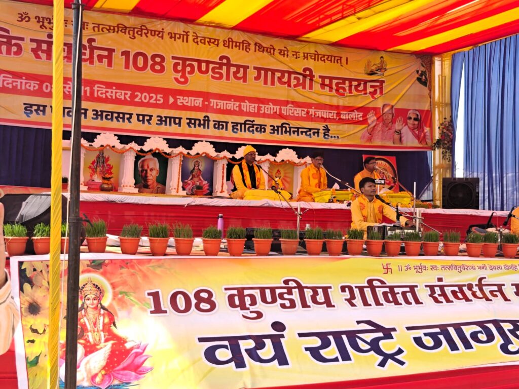 बालोद– कलेक्टर श्रीमती दिव्या उमेश मिश्रा के कुशल नेतृत्व में जिले को मिल रही लगातार उपलब्धियों की फेहरिस्त में आज एक और उलपब्धि जुड़ गई है। कलेक्टर श्रीमती के निर्देशानुसार महिला एवं बाल विकास विभाग द्वारा जिला मुख्यालय बालोद के गजानंद पोहा मिल परिसर में आयोजित 108 कुण्डलीय महायज्ञ के अवसर पर बालोद जिले के 1500 गर्भवती माताओं का एक साथ पुंसवन संस्कार किया गया। महिला एवं बाल विकास विभाग के जिला कार्यक्रम अधिकारी श्री समीर पाण्डेय ने बताया कि आज गजानंद पोहा मिल परिसर मिल में आयोाजित 108 कुण्डलीय महायज्ञ के दौरान शांति कुंज हरिद्वार से पधारे पंडितों के द्वारा गर्भस्थ शिशु के उत्तम स्वास्थ्य, मानसिक विकास और सुरक्षा सुनिश्चित करने हेतु जिले के 1500 गर्भवती माताओं का पुंसवन संस्कार किया गया। उन्होंने बताया कि आज आयोजित 1500 गर्भवती महिलाओं का गोदभराई कार्यक्रम जिले का सबसे वृहद आयोजन था। उन्होंने बताया कि इसके पूर्व वर्ष 2022-23 में बेमेतरा जिले के सिलहट में 1050 गर्भवती माताओं की एक साथ गोदभराई कार्यक्रम संपन्न किया गया था, जो कि उस समय का विश्व रिकार्ड था। लेकिन आज जिला मुख्यालय बालोद में आयोजित इस वृहद गोदभराई कार्यक्रम के आयोजन के माध्यम से बेमेतरा जिले के पिछले वल्र्ड रिकार्ड को तोड़ते हुए बालोद जिले ने अपने खाते में एक और वल्र्ड रिकार्ड दर्ज कर लिया है।