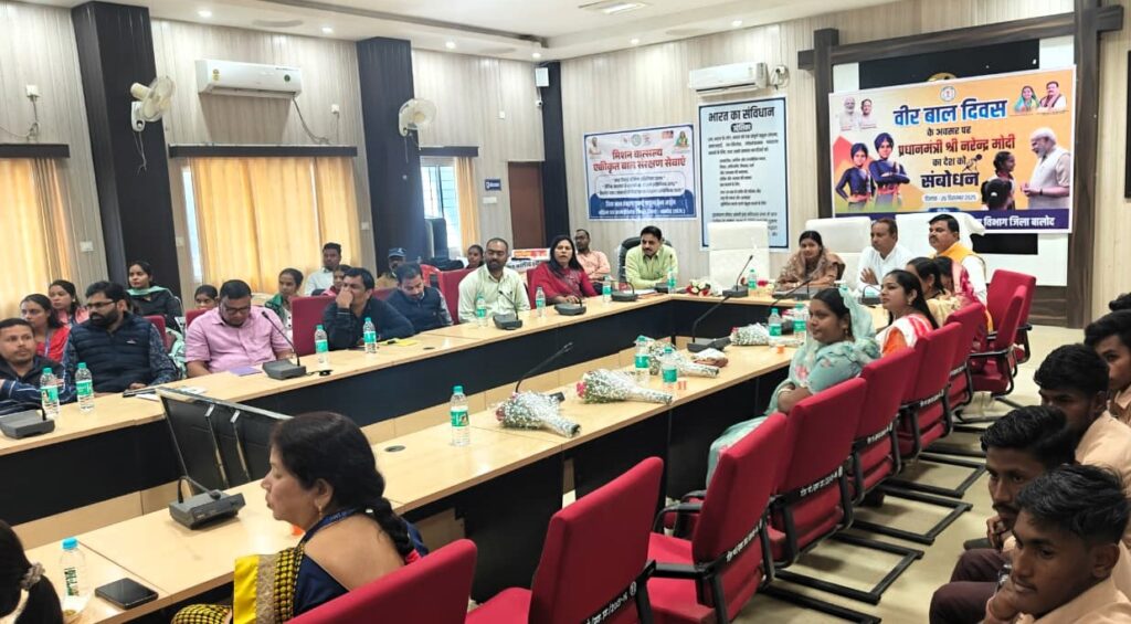बालोद- भारत सरकार के निर्देशानुसार जिला पंचायत बालोद में 26 दिसंबर को जिला स्तरीय ’वीर बाल दिवस’ कार्यक्रम का आयोजन किया गया। इस दौरान साबिहजादे जोरावर सिंह एवं फतेह सिंह के बलिदानों को स्मरण किया गया। जिला कार्यक्रम अधिकारी ने बताया कि कार्यक्रम में वेब लाईफ टेलीकास्ट के माध्यम से नई दिल्ली में आयोजित राष्ट्रीय स्तर का मुख्य कार्यक्रम का प्रसारण भी किया गया। इस अवसर पर जिला पंचायत अध्यक्ष श्रीमती तारणी पुष्पेन्द्र चन्द्राकर, राष्ट्रीय बाल अधिकार संरक्षण आयोग के पूर्व सदस्य श्री यशवंत जैन, जिला पंचायत उपाध्यक्ष श्री तोमन साहू सहित जिला पंचायत के मुख्य कार्यपालन अधिकारी श्री सुनील चंद्रवंशी, मुख्य चिकित्सा एवं स्वास्थ्य अधिकारी डॉ जे.एल. उइके, समाज कल्याण विभाग के उप संचालक श्री अजय गेडाम, उपसंचालक पंचायत काव्या जैन, जिला कार्यक्रम अधिकारी श्री समीर पाण्डेय सहित अन्य अधिकारी-कर्मचारीगण उपस्थित थे।