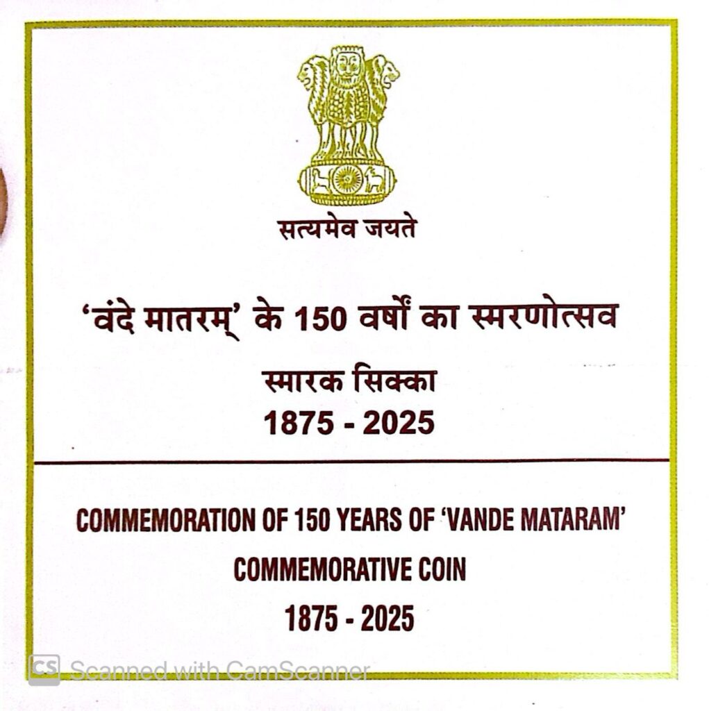 स्वतंत्रता के बाद, 24 जनवरी 1950 को “वन्दे मातरम्” को भारत का राष्ट्रीय गीत घोषित किया गया। आज भी यह गीत राष्ट्रीय आयोजनों, शैक्षणिक संस्थानों और सांस्कृतिक कार्यक्रमों में उसी श्रद्धा और सम्मान के साथ गाया जाता है। 150 रुपये का यह स्मारक सिक्का “वन्दे मातरम्” के 150 वर्षों की ऐतिहासिक यात्रा और उसके राष्ट्र निर्माण में योगदान को रेखांकित करता है। यह सिक्का आने वाली पीढ़ियों को देश के स्वतंत्रता संग्राम, सांस्कृतिक मूल्यों और राष्ट्रीय एकता की भावना से जोड़ने का कार्य करेगा। यह पहल निश्चय ही भारत की समृद्ध विरासत, राष्ट्रगौरव और सांस्कृतिक चेतना को सहेजने की दिशा में एक स्मरणीय कदम है।मुंबई टक़साल से जारी यह आकर्षक सिक्का बालोद के वरिष्ठ संग्राहक डॉ प्रदीप जैन को प्राप्त हुआ है ।