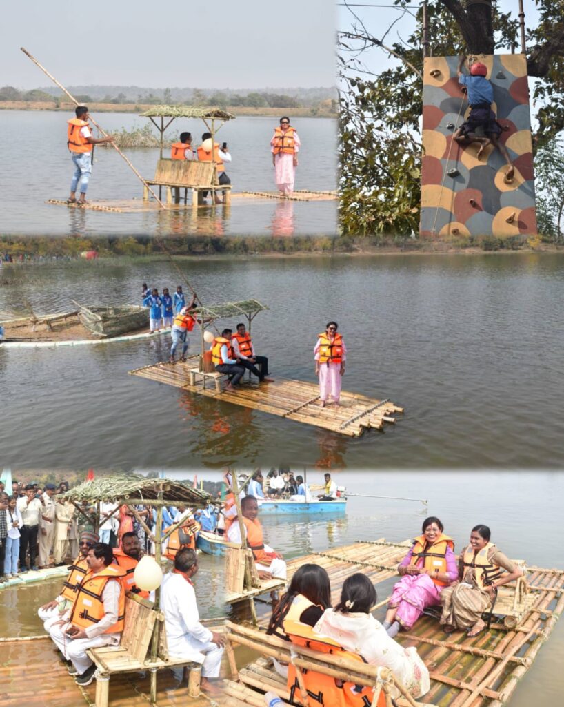 जनप्रतिनिधि व अधिकारी पहुंचे, बैम्बू राफ्टिंग से किया जलाशय का भ्रमण