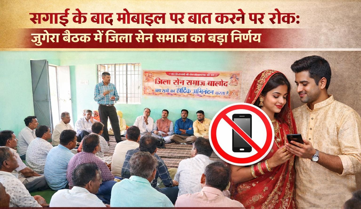 बालोद। बदलते सामाजिक परिवेश के बीच परंपरा और मर्यादा को बनाए रखने के उद्देश्य से बालोद जिले में सेन समाज ने एक अहम और अनोखा निर्णय लिया है। जुंगेरा में आयोजित जिला सेन समाज की बैठक में समाज के पदाधिकारियों एवं वरिष्ठजनों की उपस्थिति में सगाई के बाद वर-वधू के बीच मोबाइल पर अकेले बातचीत करने पर प्रतिबंध लगाने का फैसला सर्वसम्मति से लिया गया। यह निर्णय अब पूरे क्षेत्र में चर्चा का विषय बन गया है।