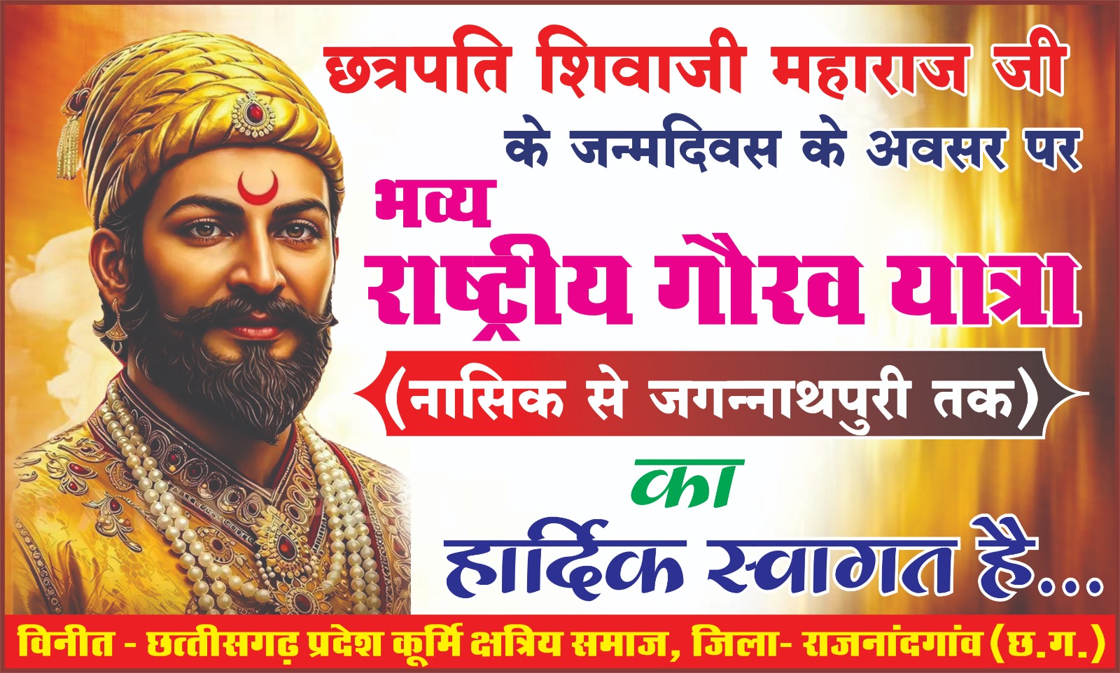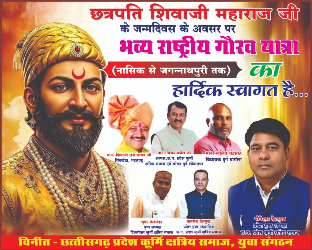 आयोजकों का विश्वास है कि नासिक से जगन्नाथ पुरी तक की यह राष्ट्रगौरव रथयात्रा और अंतरराष्ट्रीय शिव जन्मोत्सव आने वाले समय में भारतीय संस्कृति और शिवाजी महाराज के आदर्शों को वैश्विक स्तर पर नई पहचान दिलाएगा। प्रदेश युवा अध्यक्ष छत्तीसगढ़ प्रदेश कुर्मी समाज योगेश्वर देशमुख ने बताया कि आज 16 फरवरी को राजनांदगांव के जरिए छत्तीसगढ़ प्रदेश के साथ इस यात्रा का भव्य स्वागत किया जाएगा।