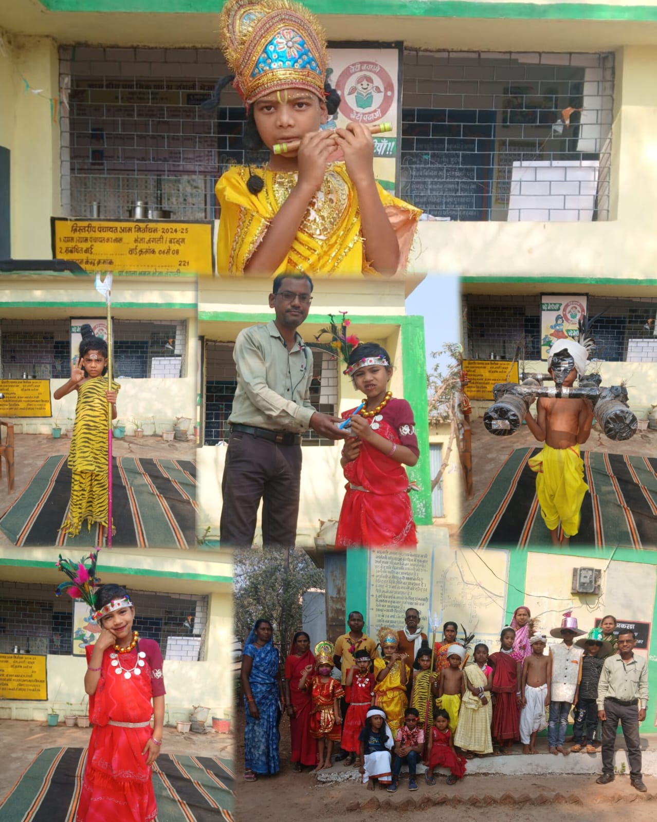 कार्यक्रम के दौरान कक्षा चौथी के छात्र रोहण कृष्ण के रूप में, अरमान भोलेबाबा के रूप में, दीपांशू बैगा वेशभूषा में, महिमा राधा रानी के रूप में तथा नोविया एवं जानवीं सखियों के रूप में सुसज्जित होकर आए। सभी बच्चों को गांव में गली भ्रमण भी कराया गया, जहां ग्रामवासियों ने उनका उत्साहवर्धन करते हुए स्वागत किया।