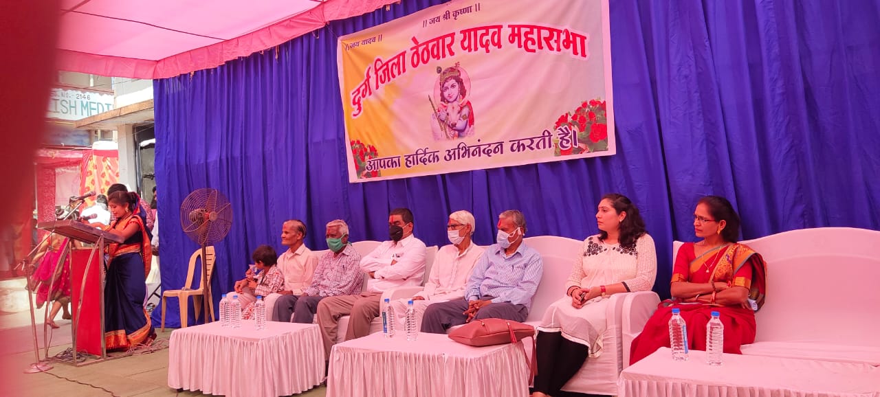 दुर्ग । जिला यादव ठेठवार महासभा का पारिवारिक मिलन समारोह यादव समुदाय भवन राजीव नगर दुर्ग में सम्पन्न हुआ। कार्यक्रम का शुभारंभ यादव समाज के इष्टदेव यादव कुल शिरोमणि भगवान श्रीकृष्णजी के तैलचित्र पर दीप प्रज्जलित करके किया गया। इस कार्यक्रम के मुख्य अतिथि के रूप में उपस्थित दुर्ग शहर के महापौर धीरज बाकलीवाल नेे कहा कि “यादव समाज का प्रत्येक व्यक्ति को अपनी जिम्मेदारी लेकर निरक्षरों को साक्षर बनाने का कार्य करें, ताकि उसका उसका सन्देश अन्य समाज को जाए। शिक्षा के बिना समाज का विकास सँभव नही। आज विकास का मूलमंत्र ही शिक्षा है। उसके बिना व्यक्ति व समाज अधूरा है।” समाज के जर्जर भवन के लिए महापौर निधि से 5 लाख की घोषणा की गई। कार्यक्रम की अध्यक्षता कर रहे दुर्ग नगर निगम के सभापति राजेश यादव ने कहा कि “समाज को नई ऊंचाई में देखना है। प्रत्येक को मेहनत लगन से कार्य की आवश्यकता है। हमे सभी चुनौतियों का सामना कर आगे आना चाहिए।”