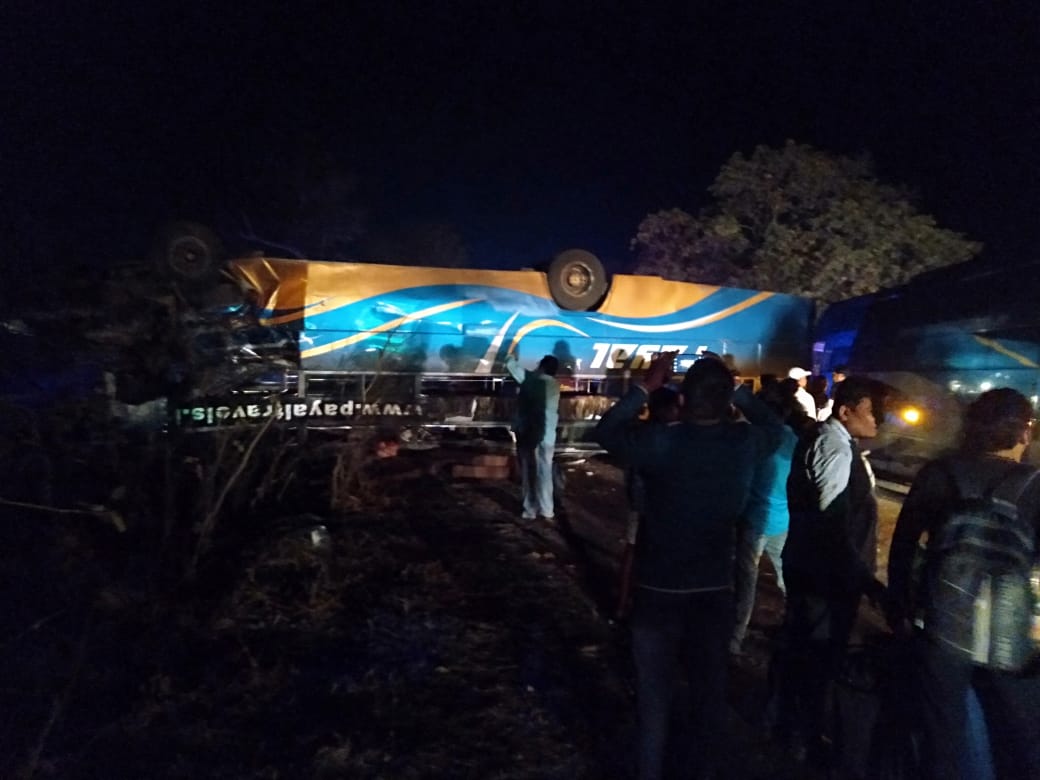जानकारी के अनुसार पायल ट्रैवल्स की बस दुर्ग से जगदलपुर जा रही थी तभी रात करीब एक बजे संबलपुर अनियंत्रित होकर होकर पलट गई,जिला अस्पताल के डॉ ने बताया कि बस में सवार 10 से ज्यादा यात्रियों को चोट आई है,जिनका इलाज जारी है,