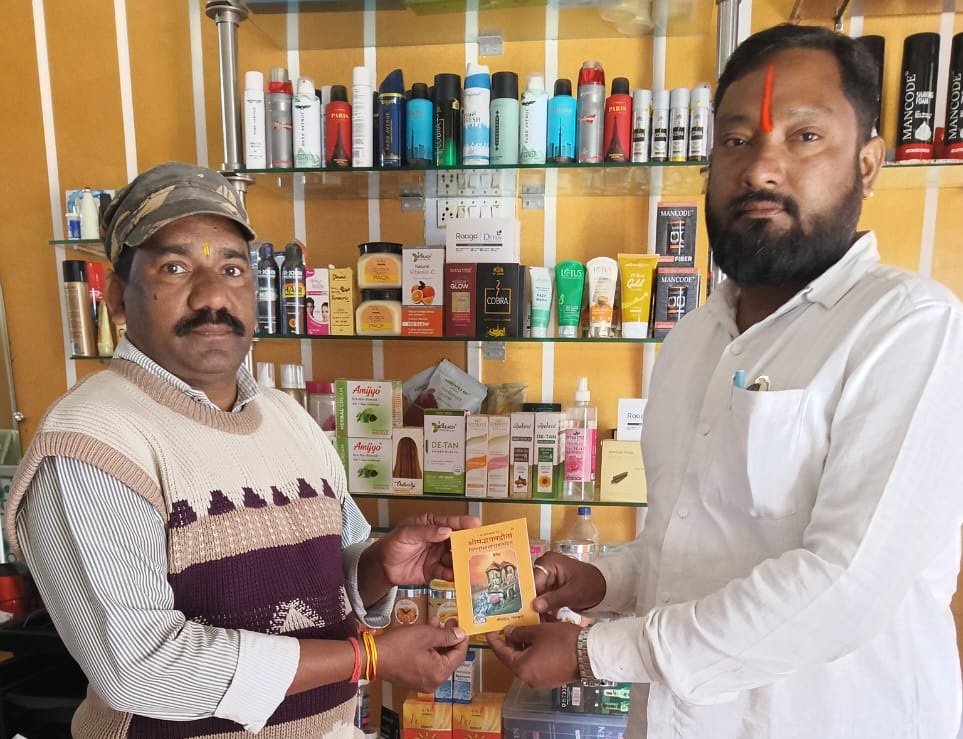 भगवान रूपी ग्राहको को किया गया गीता जयंती पर गीता वितरण